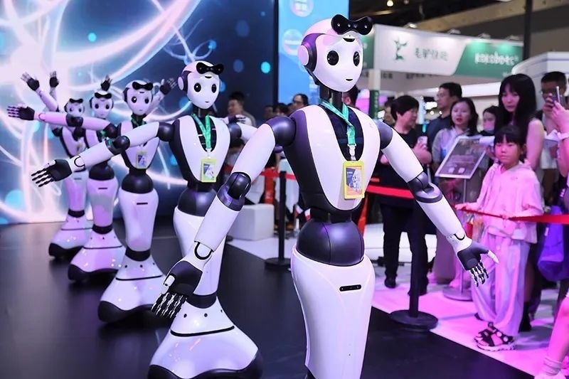 △2023年7月6日,2023世界人工智能大會上,人形機器人進行“千手觀音”表演。