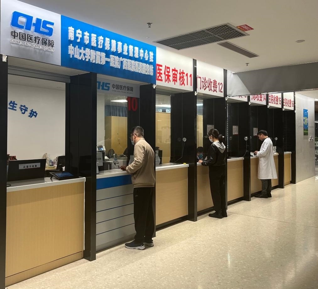 群眾在廣西壯族自治區(qū)南寧市醫(yī)療保障事業(yè)管理中心駐中山大學(xué)附屬第一醫(yī)院廣西醫(yī)院醫(yī)保服務(wù)站咨詢。(新華社記者 徐海濤攝)