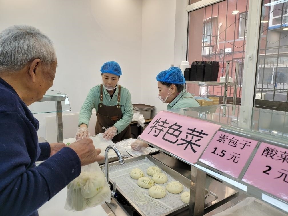 臨近中午,遼寧省沈陽(yáng)市大東區(qū)東勝社區(qū)網(wǎng)格員在群中發(fā)布了“今日菜譜”:燒排骨、燒茄子、雪里紅燉豆腐……88歲的居民唐孝周來(lái)到社區(qū)開(kāi)辦的惠民食堂,購(gòu)買了一菜一飯,和鄰居邊聊邊吃。