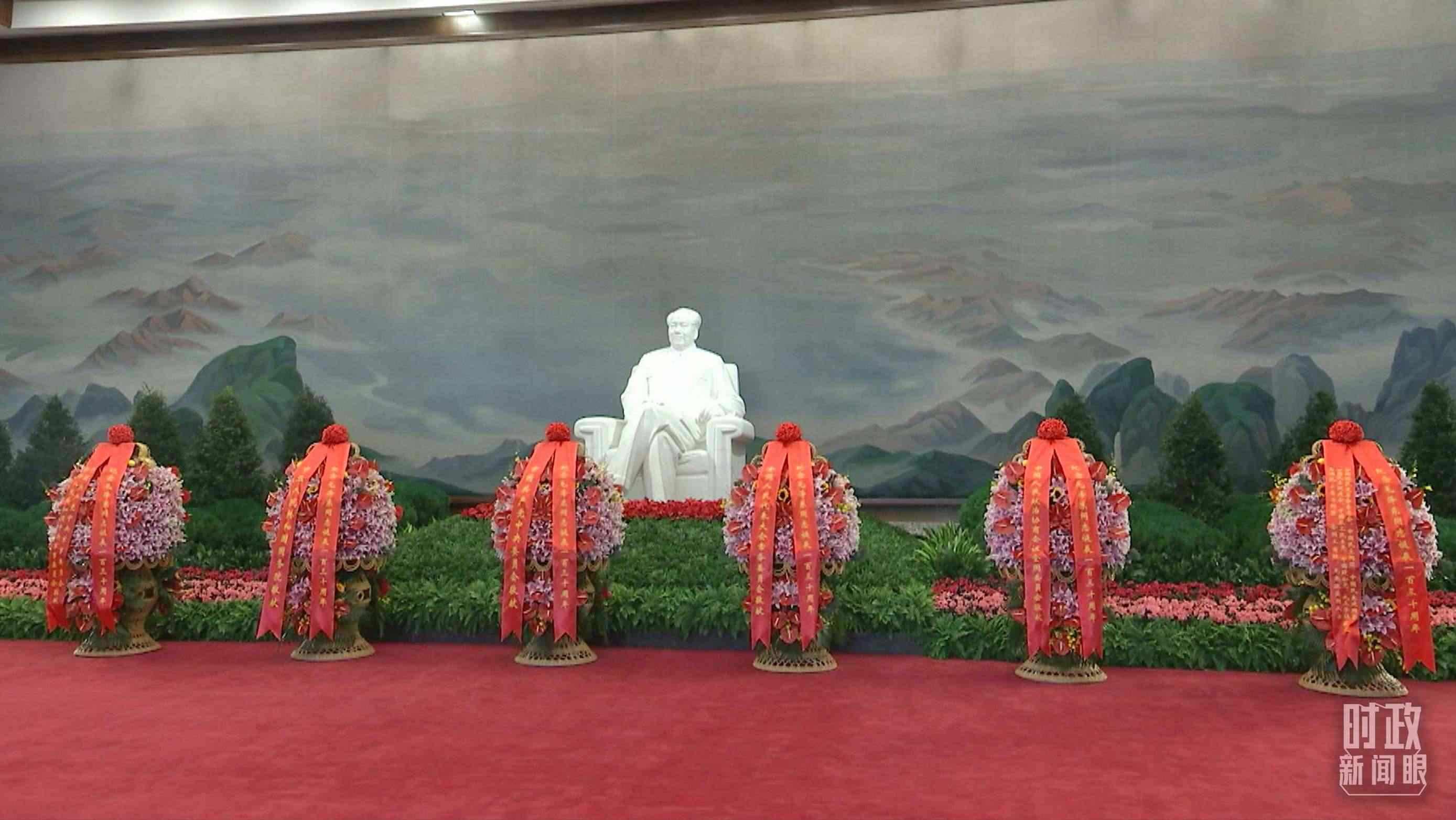 △座談會(huì)前,習(xí)近平等領(lǐng)導(dǎo)同志來(lái)到毛主席紀(jì)念堂。北大廳內(nèi),中共中央,全國(guó)人大常委會(huì),國(guó)務(wù)院,全國(guó)政協(xié),中央軍委,各民主黨派、全國(guó)工商聯(lián)和無(wú)黨派愛(ài)國(guó)人士敬獻(xiàn)的花籃擺放在毛澤東同志坐像正前方。(總臺(tái)央視記者郭鴻拍攝)