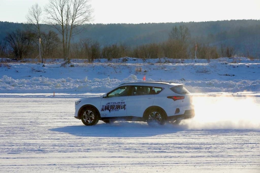 2萬(wàn)多平方米的漠河紅河谷寒地試車(chē)基地內(nèi),形態(tài)多樣的冰雪路面上,雪霧彌漫,馬達(dá)轟鳴,燈光閃爍,加速、轉(zhuǎn)彎、急停、漂移……試車(chē)人員進(jìn)行著一系列“炫酷操作”,冰雪飛揚(yáng)的場(chǎng)地留下一串飄逸的車(chē)影。