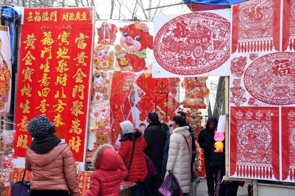 2019年2月1日,市民在天津古文化街選購新年飾品。