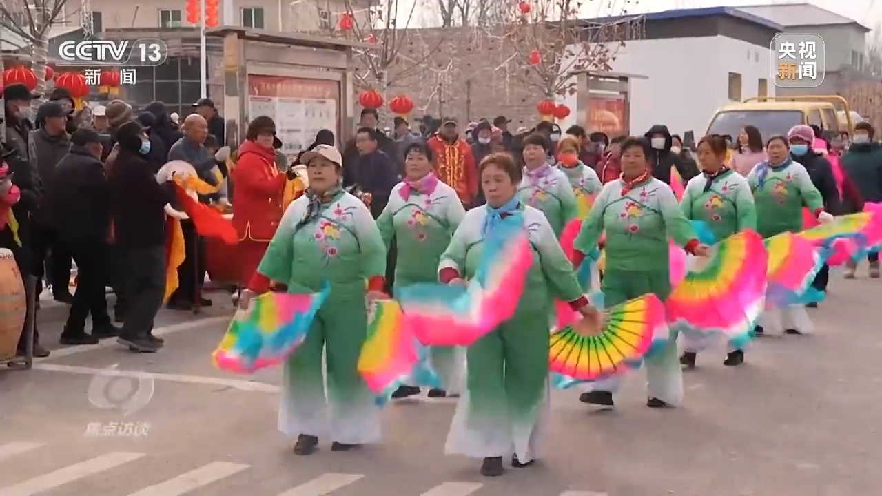 敲鑼打鼓扭秧歌,村民們自發(fā)組成的文藝隊(duì)雖然并不專業(yè),但鄉(xiāng)親們的臉上都洋溢著燦爛的笑容。