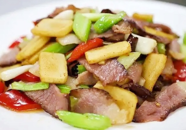 年糕,各地的做法都不一樣,湖北人做年糕也有自己的講究,把年糕切成0.3厘米厚的年糕片,油鍋燒到八成熱,把臘肉片炒一下,再加年糕片、大蒜等作料,炒出來(lái)顏色好看,臘味十足,就是自家最熟悉的那道年味兒。