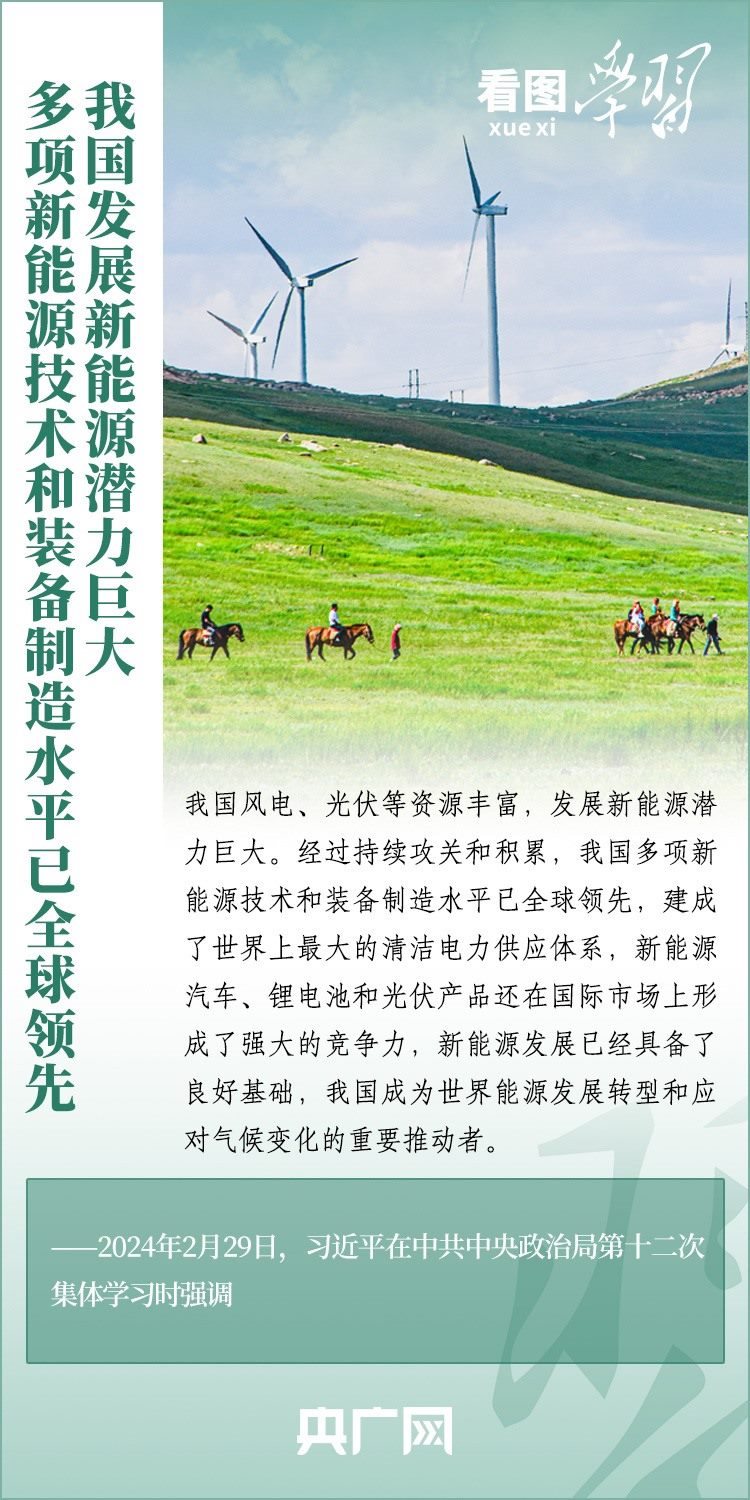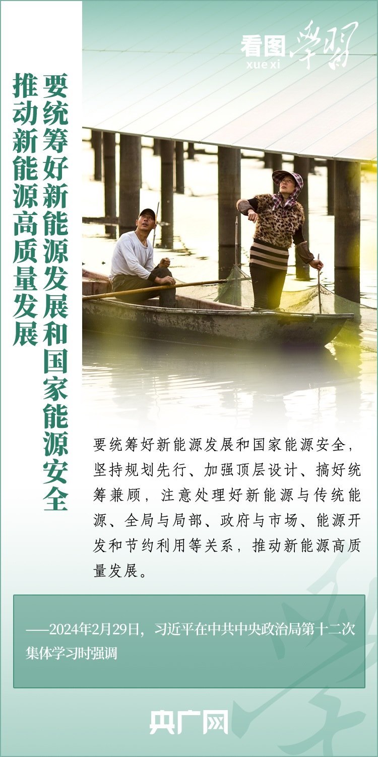 能源安全事關(guān)經(jīng)濟(jì)社會發(fā)展全局。2月29日,習(xí)近平總書記在中共中央政治局第十二次集體學(xué)習(xí)時(shí)強(qiáng)調(diào),我們要順勢而為、乘勢而上,以更大力度推動我國新能源高質(zhì)量發(fā)展,為中國式現(xiàn)代化建設(shè)提供安全可靠的能源保障,為共建清潔美麗的世界作出更大貢獻(xiàn)。一起來學(xué)習(xí)!