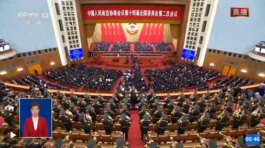 獨家視頻丨全國政協(xié)十四屆二次會議開幕 全場高唱國歌