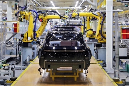 △ 2023年12月10日,江蘇常州一汽車(chē)基地的生產(chǎn)車(chē)間,機(jī)器臂在組裝新能源汽車(chē)。