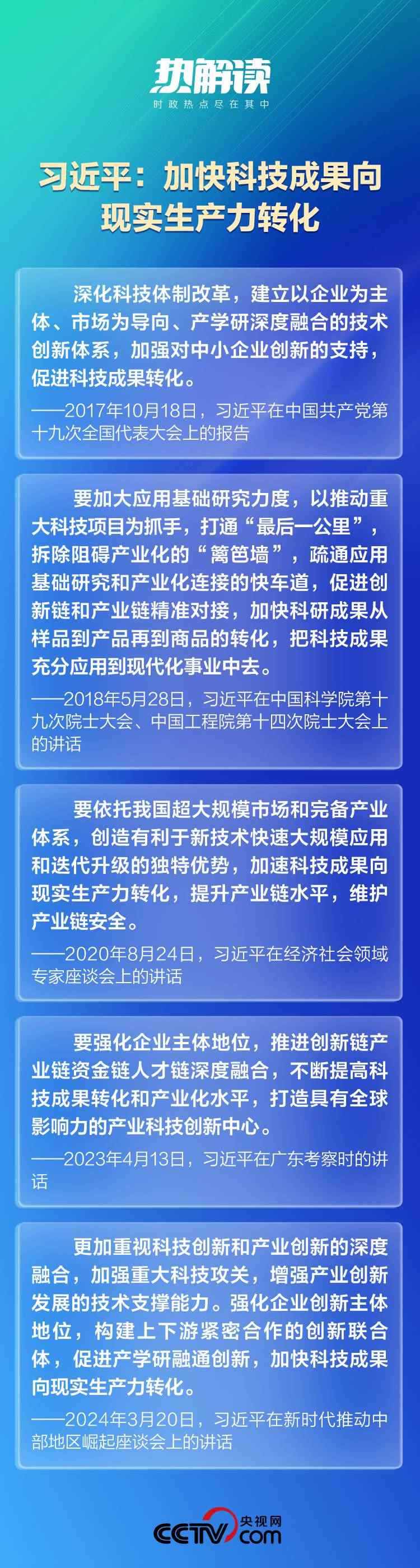 聽(tīng)取湖南省委和省政府的工作匯報(bào),總書(shū)記再提新質(zhì)生產(chǎn)力,同樣提到科技成果轉(zhuǎn)化問(wèn)題:“促進(jìn)創(chuàng)新鏈產(chǎn)業(yè)鏈資金鏈人才鏈深度融合,推動(dòng)科技成果加快轉(zhuǎn)化為現(xiàn)實(shí)生產(chǎn)力?!?/p>