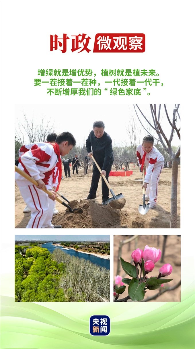 一次次揮鍬鏟土、培土圍堰、提水澆灌,總書(shū)記身體力行、率先垂范,就是要號(hào)召大家都行動(dòng)起來(lái),積極參與植樹(shù)造林,人人爭(zhēng)當(dāng)綠色使者、生態(tài)先鋒,為建設(shè)美麗中國(guó)增綠添彩,共同譜寫(xiě)人與自然和諧共生的中國(guó)式現(xiàn)代化新篇章。