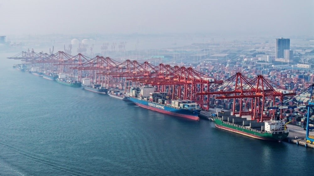 2024年3月28日,在廣西欽州港碼頭,多艘海輪在排隊卸貨(無人機照片)。據(jù)統(tǒng)計,截至3月29日,今年西部陸海新通道鐵海聯(lián)運班列運輸集裝箱貨物20.03萬標(biāo)箱,同比增長7.2%。