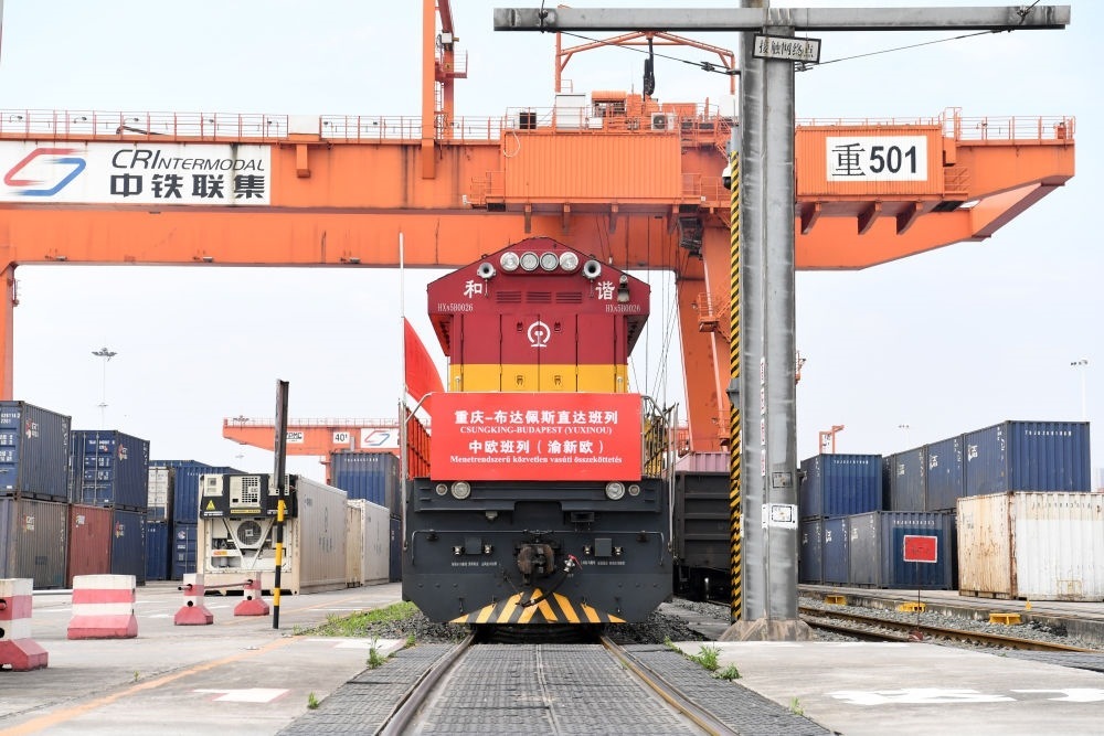 2020年6月19日,一列中歐班列布達(dá)佩斯直達(dá)班列在重慶團結(jié)村站準(zhǔn)備發(fā)車。這列班車的開行,標(biāo)志著該線路直達(dá)班列實現(xiàn)常態(tài)化運行。