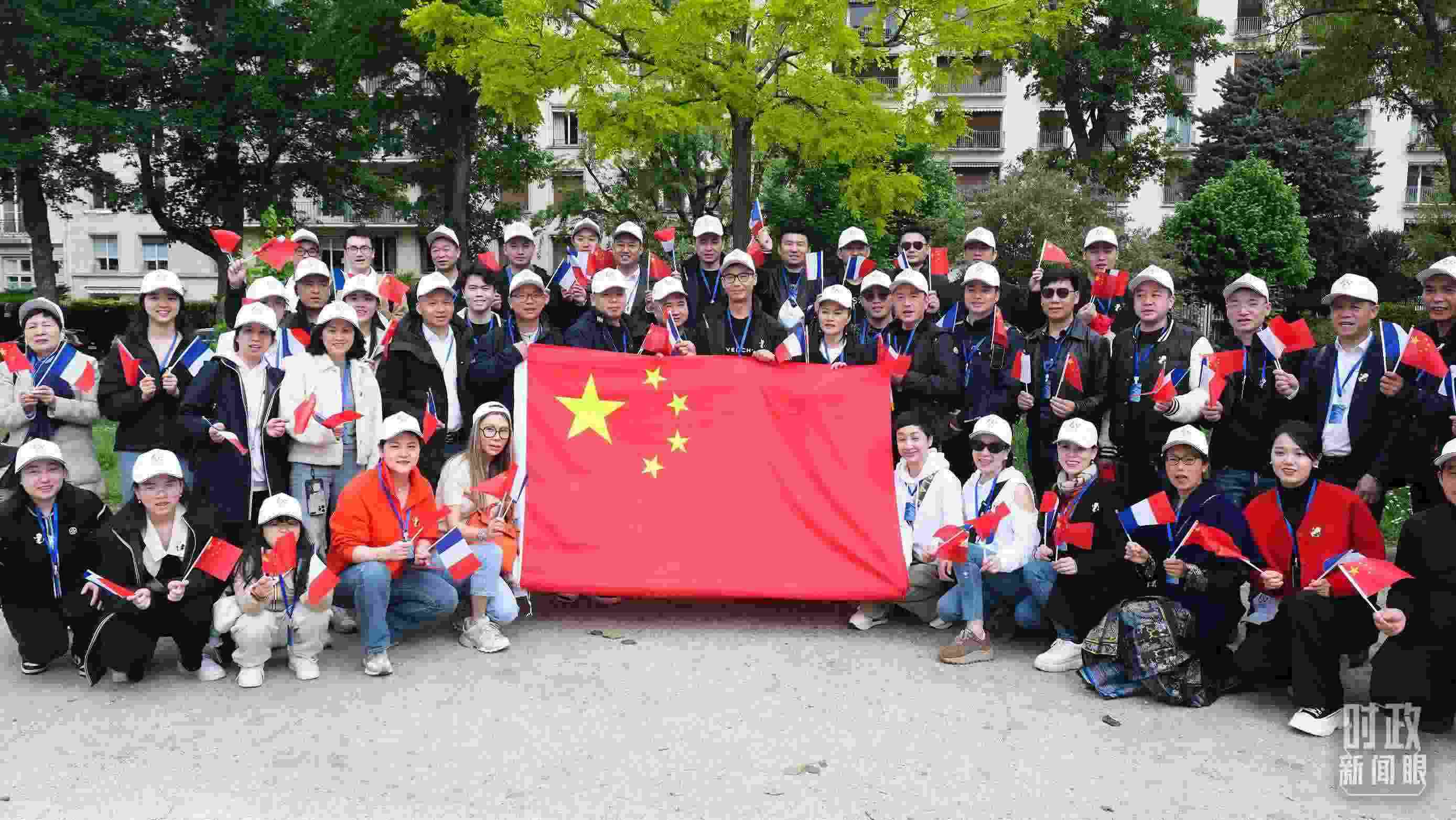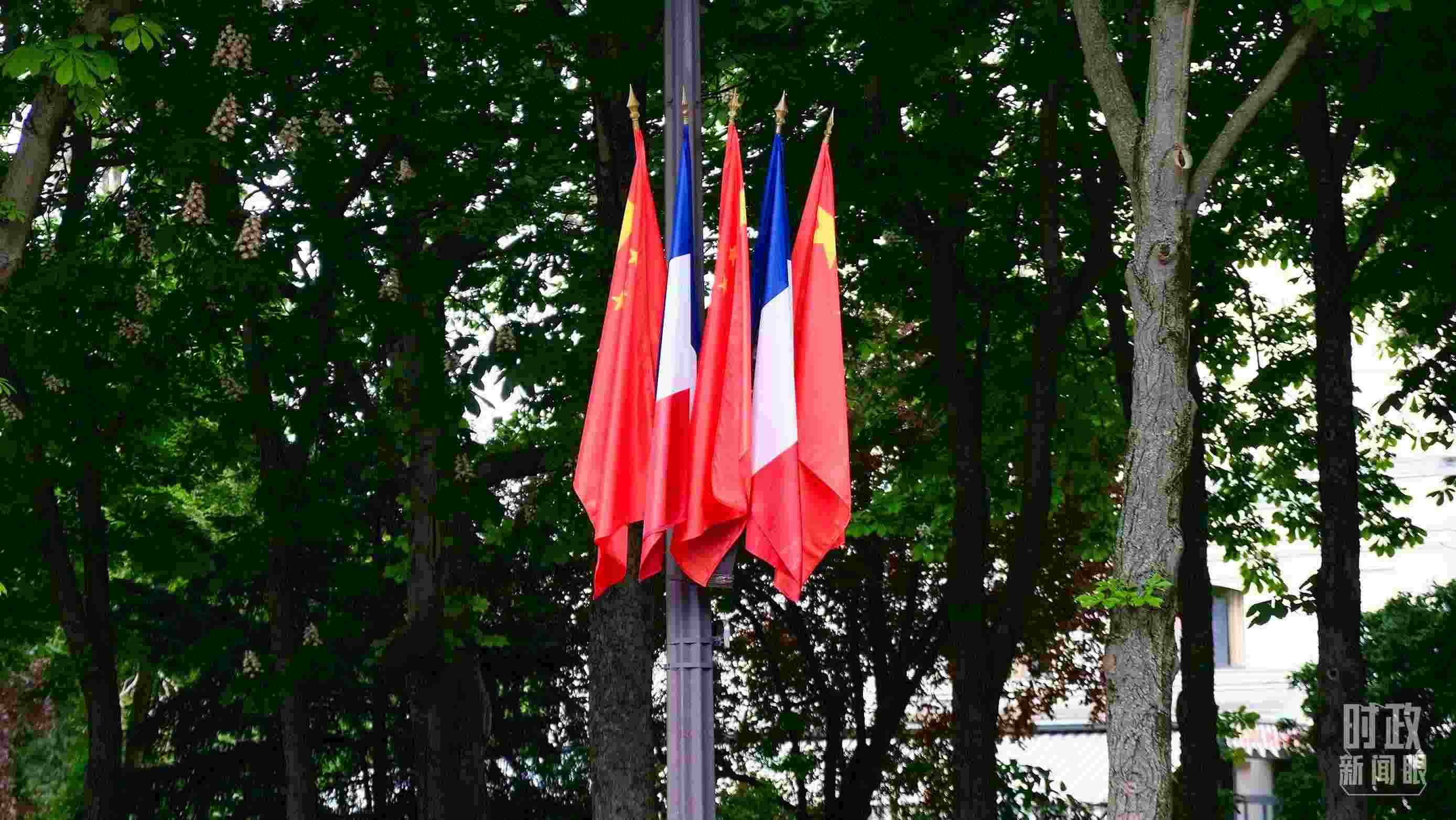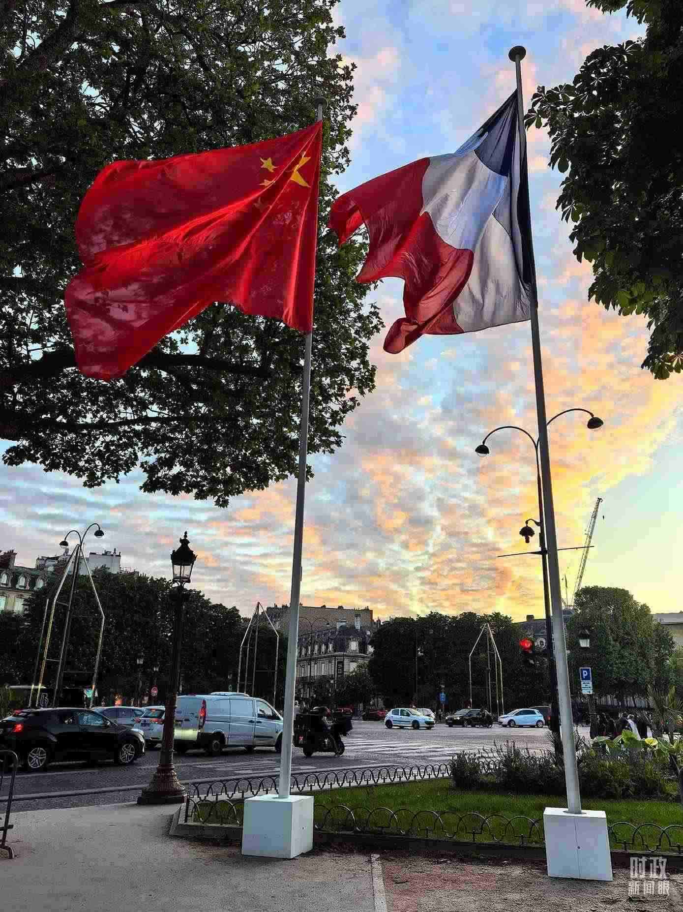 △巴黎街頭懸掛的中法兩國(guó)國(guó)旗。(總臺(tái)國(guó)廣記者吳倩拍攝)