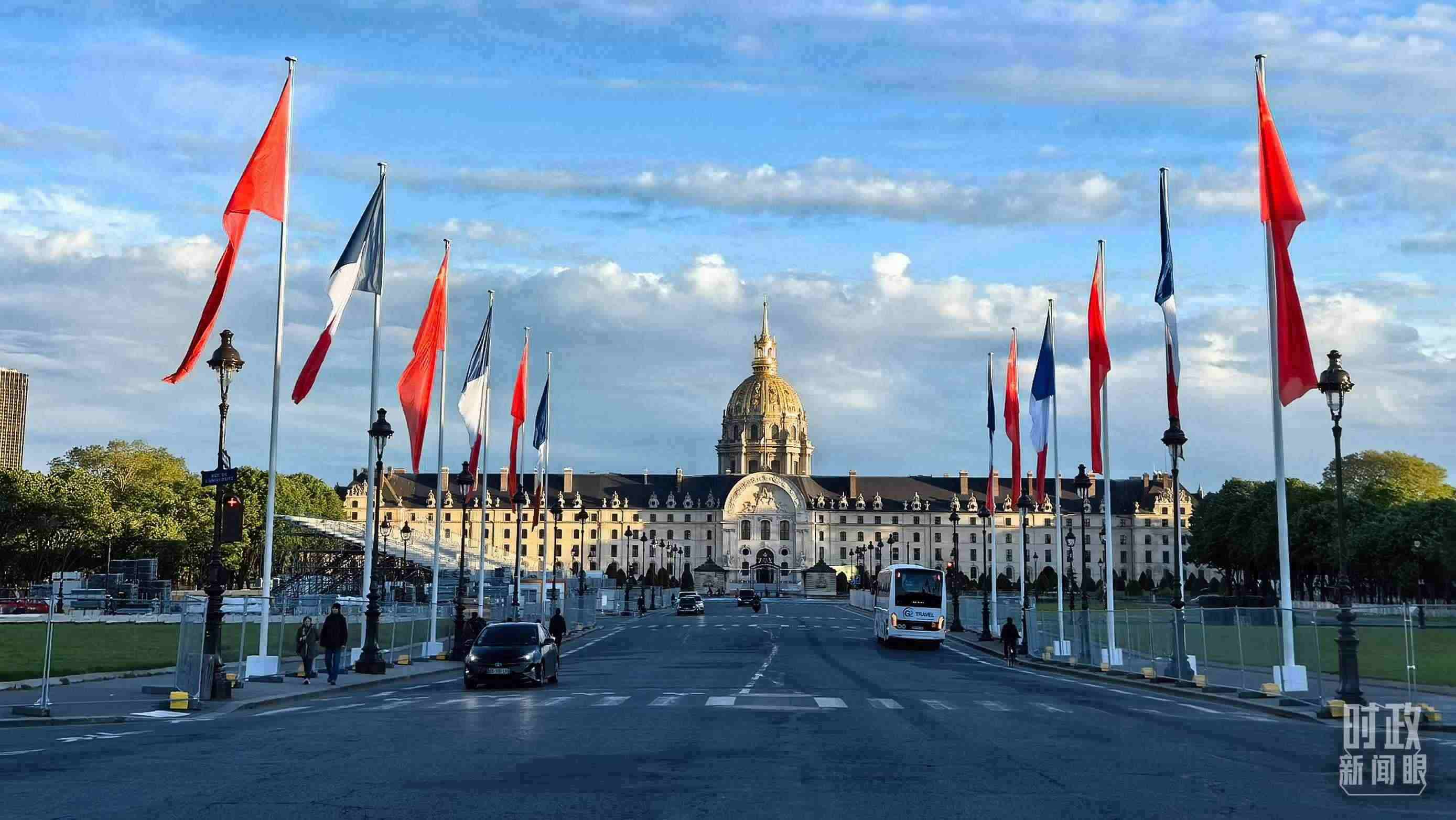 △法國(guó)巴黎榮軍院前懸掛中法兩國(guó)國(guó)旗。(總臺(tái)國(guó)廣記者吳倩拍攝)