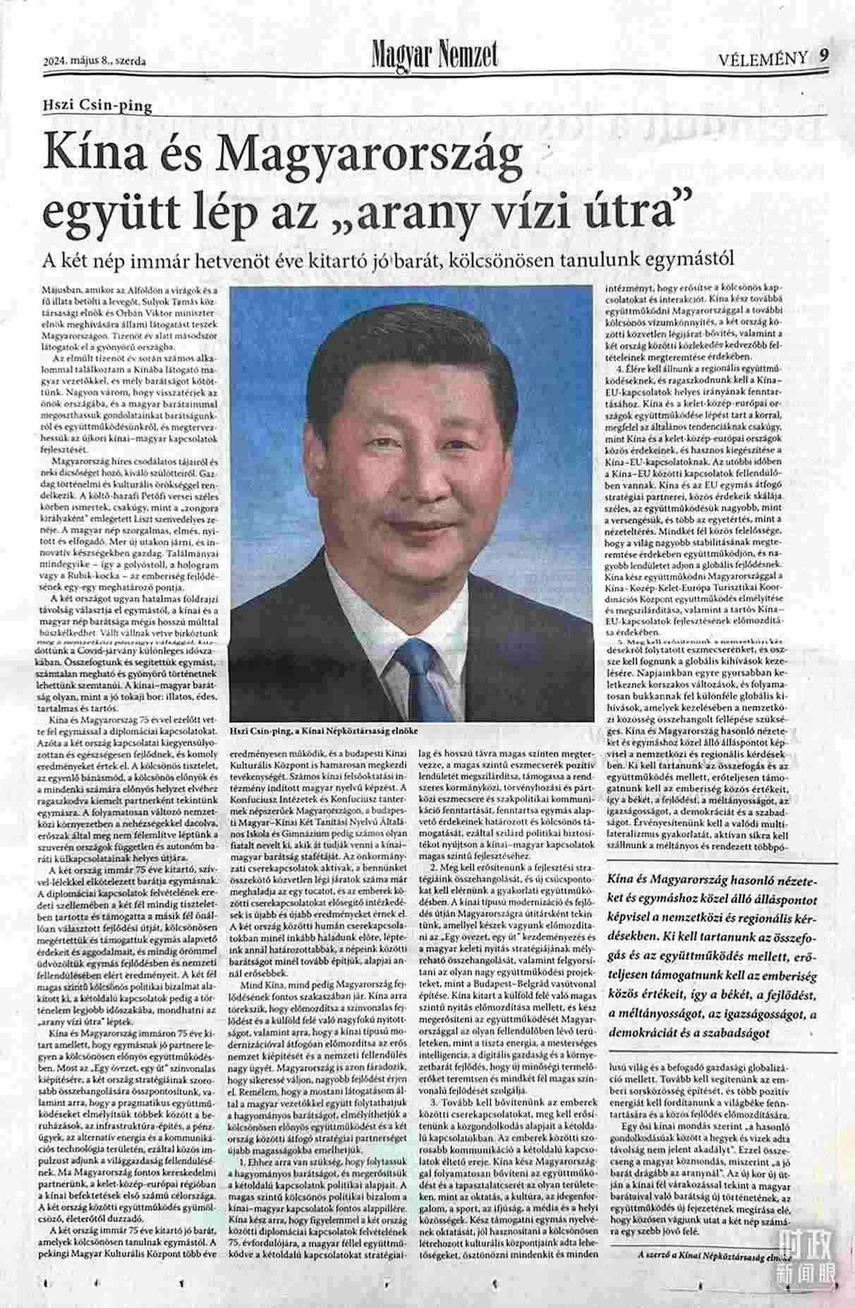 △習主席在匈牙利《匈牙利民族報》發(fā)表的署名文章。(總臺記者沃龍拍攝)