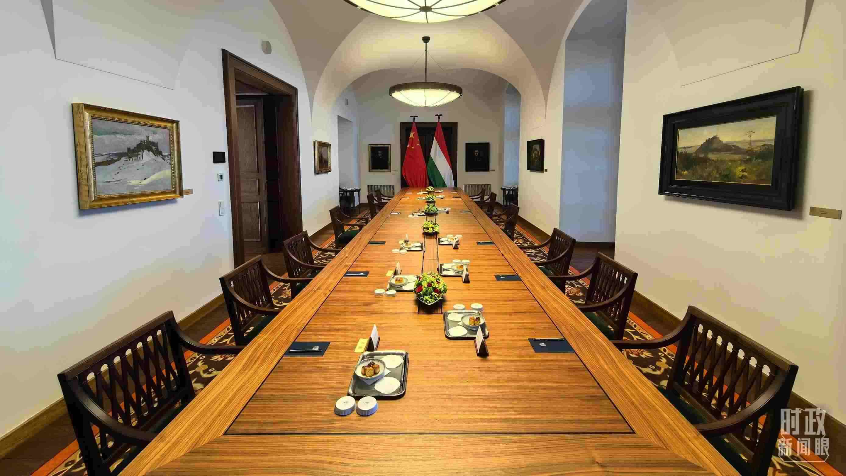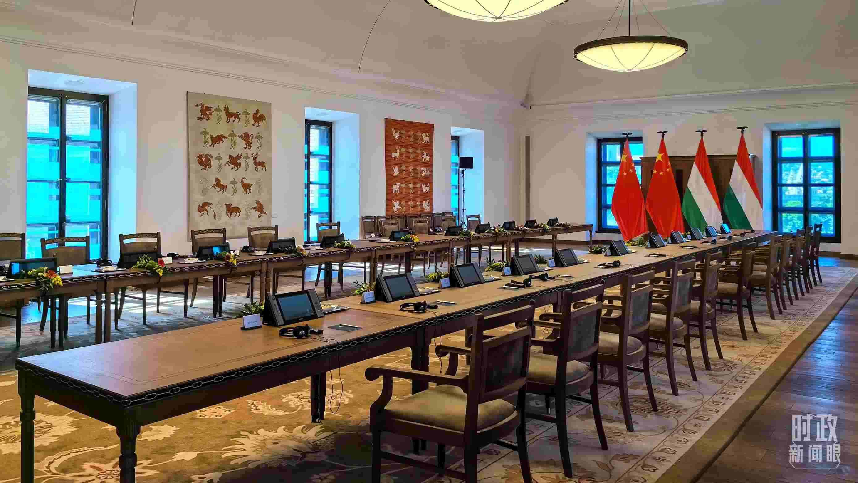 △習主席和歐爾班總理在這里舉行大范圍會談。這是會談開始前的現(xiàn)場。(總臺央視記者陸泓宇拍攝)