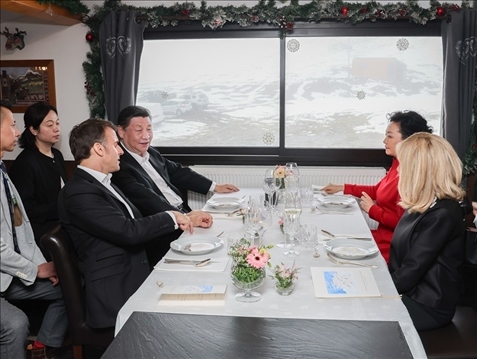 前一天,雙方發(fā)表4份聯(lián)合聲明,簽署綠色發(fā)展、航空、農(nóng)業(yè)食品、商務(wù)、人文等領(lǐng)域近20項雙邊合作文件。此時在春雪紛飛、云海浩渺中,兩國元首“不打領(lǐng)帶”溝通交流,加深彼此理解。此情此景,與兩國元首2019年的“尼斯夜談”、“豫園茶敘”,2023年的“松園會晤”,一脈相承。