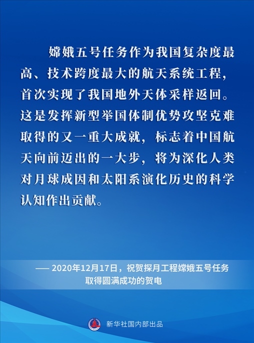 黨的十八大以來,在以習近平同志為核心的黨中央關(guān)心引領(lǐng)下,中國探月工程取得舉世矚目的重大成就,為探索宇宙奧秘、增進人類福祉屢立新功,為以中國式現(xiàn)代化全面推進強國建設(shè)、民族復興偉業(yè)作出卓越貢獻。