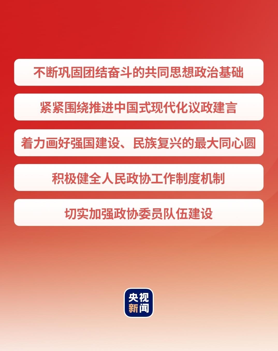 在這次慶祝大會(huì)上,習(xí)近平總書記從5個(gè)方面提出要求,寄望人民政協(xié)發(fā)揚(yáng)優(yōu)良傳統(tǒng),牢記政治責(zé)任,堅(jiān)持黨的領(lǐng)導(dǎo)、統(tǒng)一戰(zhàn)線、協(xié)商民主有機(jī)結(jié)合,充分發(fā)揮專門協(xié)商機(jī)構(gòu)作用,為推進(jìn)中國(guó)式現(xiàn)代化廣泛凝聚人心、凝聚共識(shí)、凝聚智慧、凝聚力量。
