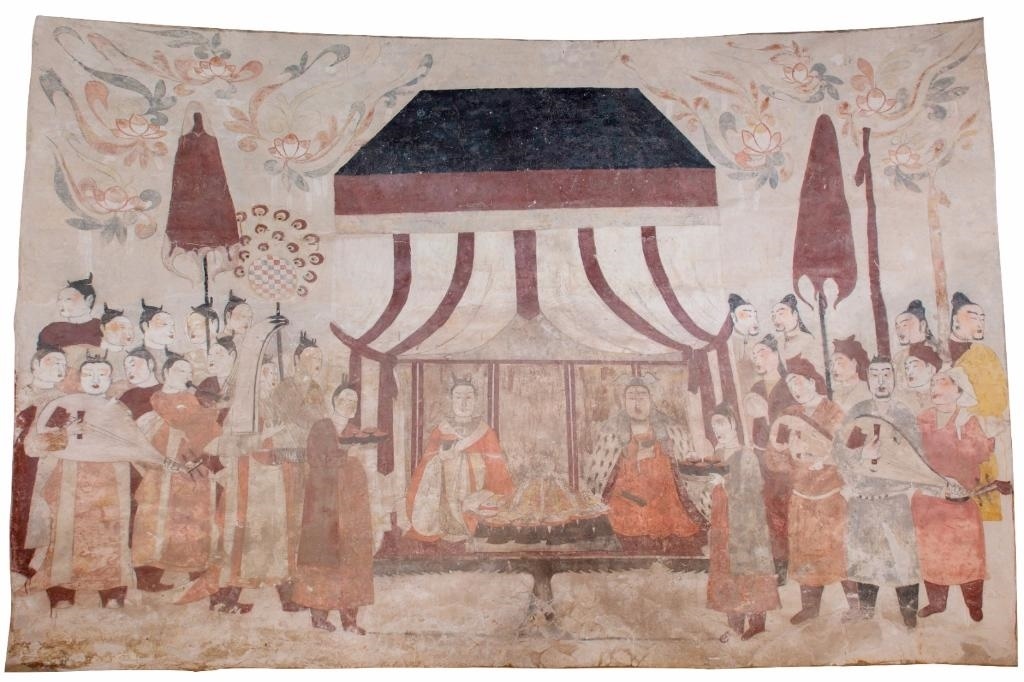 這是徐顯秀墓室北壁墓主夫婦宴飲圖。(太原北齊壁畫博物館資料圖片)