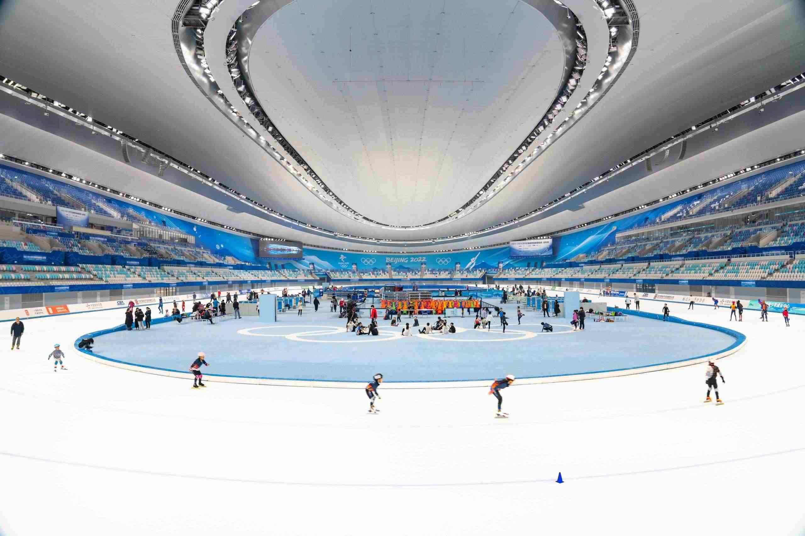 △2024年4月27日,滑冰愛好者和市民在北京國家速滑館參加滑冰運動。