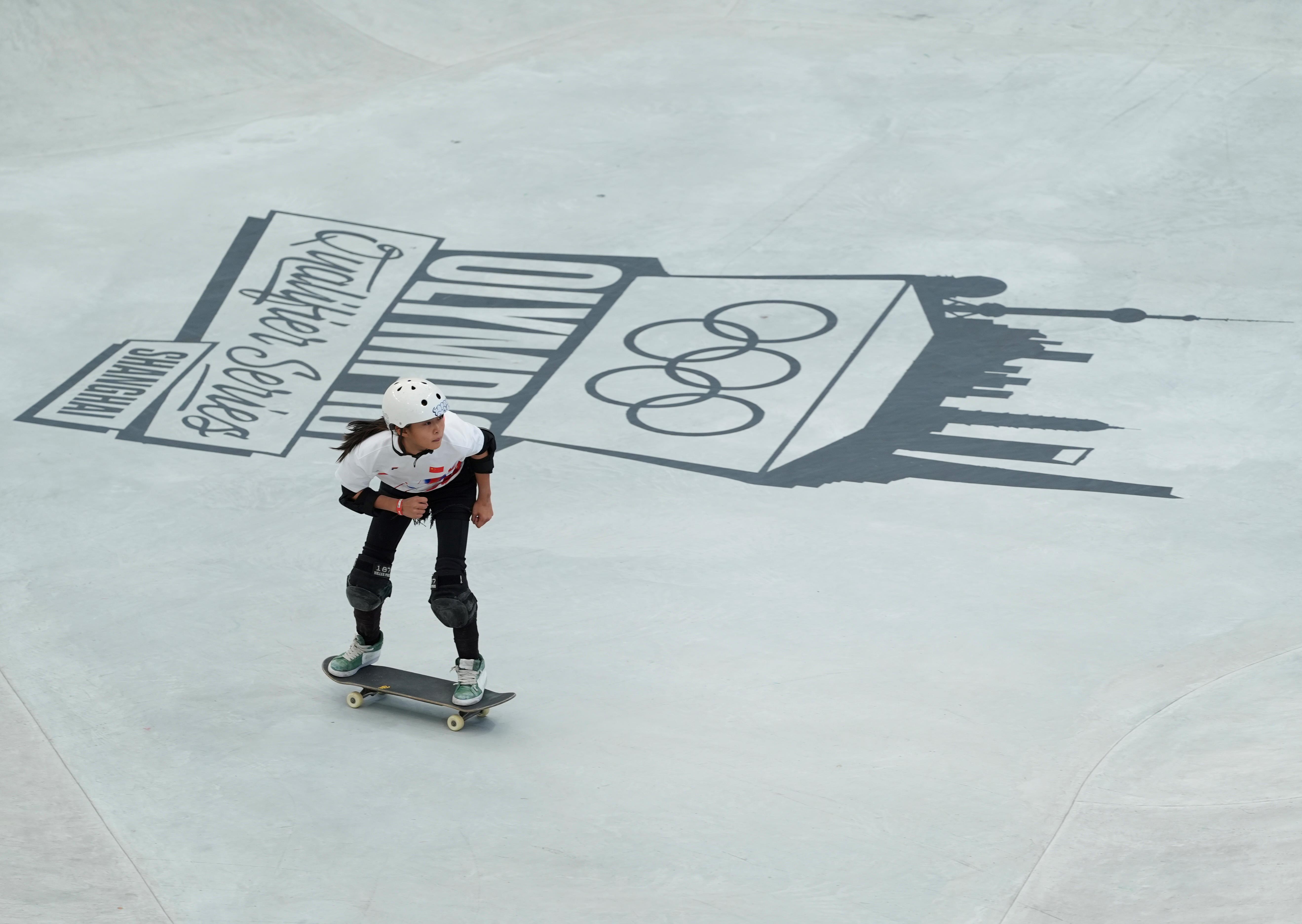 △2024年5月16日,中國選手鄭好好出戰(zhàn)2024巴黎奧運會滑板女子碗池資格賽。