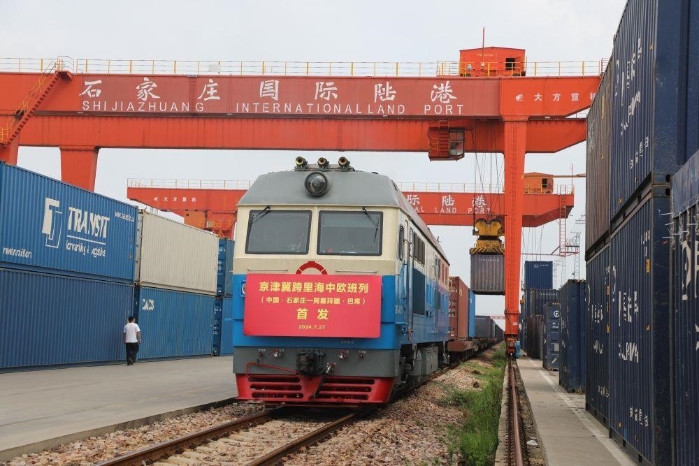 △2024年7月27日,京津冀首趟跨里海中歐班列(石家莊-巴庫(kù))從石家莊國(guó)際陸港啟程。