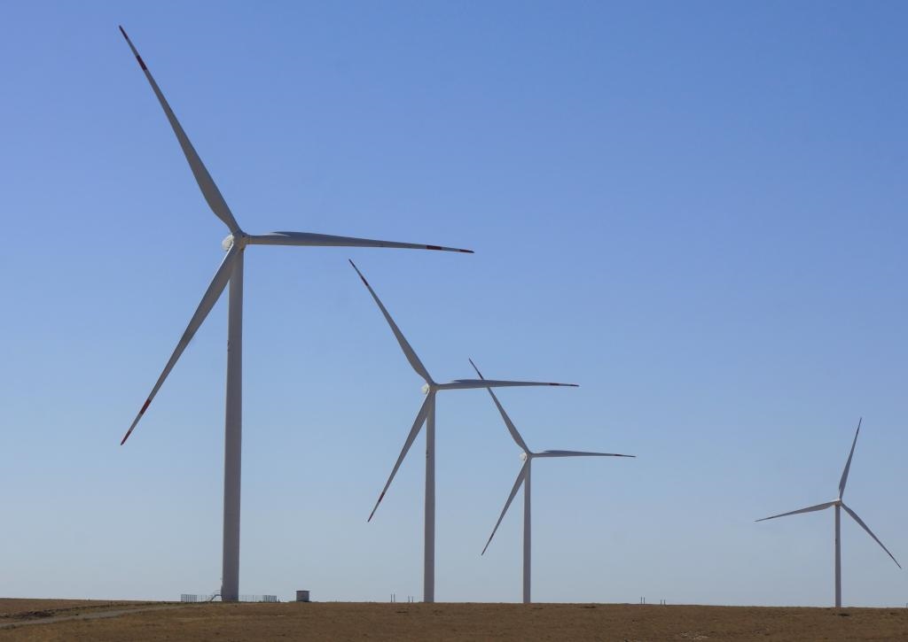這是2022年9月13日拍攝的哈薩克斯坦札納塔斯風(fēng)電場風(fēng)機(jī)。札納塔斯100兆瓦風(fēng)電項(xiàng)目由中國電力國際有限公司和哈薩克斯坦維索爾投資公司共同投資,是中哈合作的中亞最大風(fēng)電項(xiàng)目。新華社發(fā)(德米特里·瓦西連科攝)