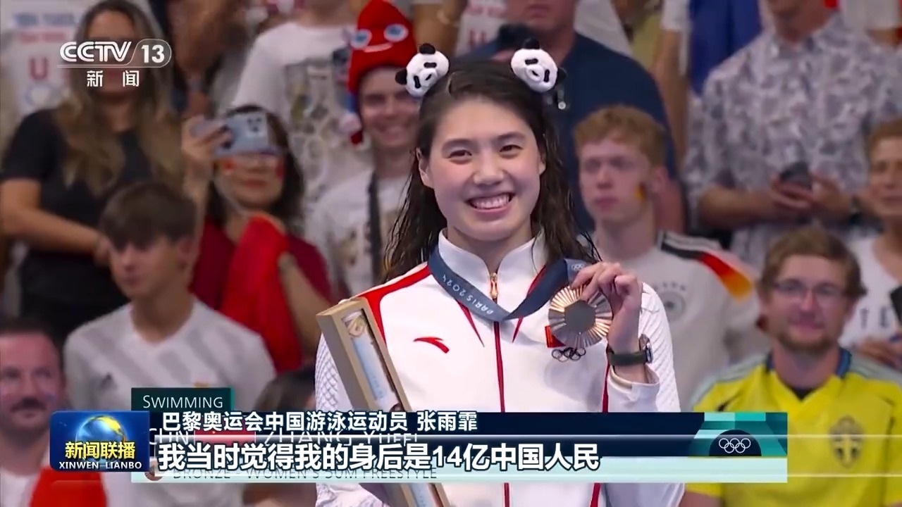 巴黎奧運會中國游泳運動員 張雨霏:沒有想到他當時走在我們跟前,每一名運動員的成績和名字他都記住了,然后就是親切地與我們交談,每個人交談的內(nèi)容都不一樣。我覺得生在中國真好,特別是在賽場上的時候,我沒有拿到冠軍,但是我看見一面面五星紅旗,他們依然在為我加油吶喊,安慰我,我當時覺得我的身后是14億中國人民。
