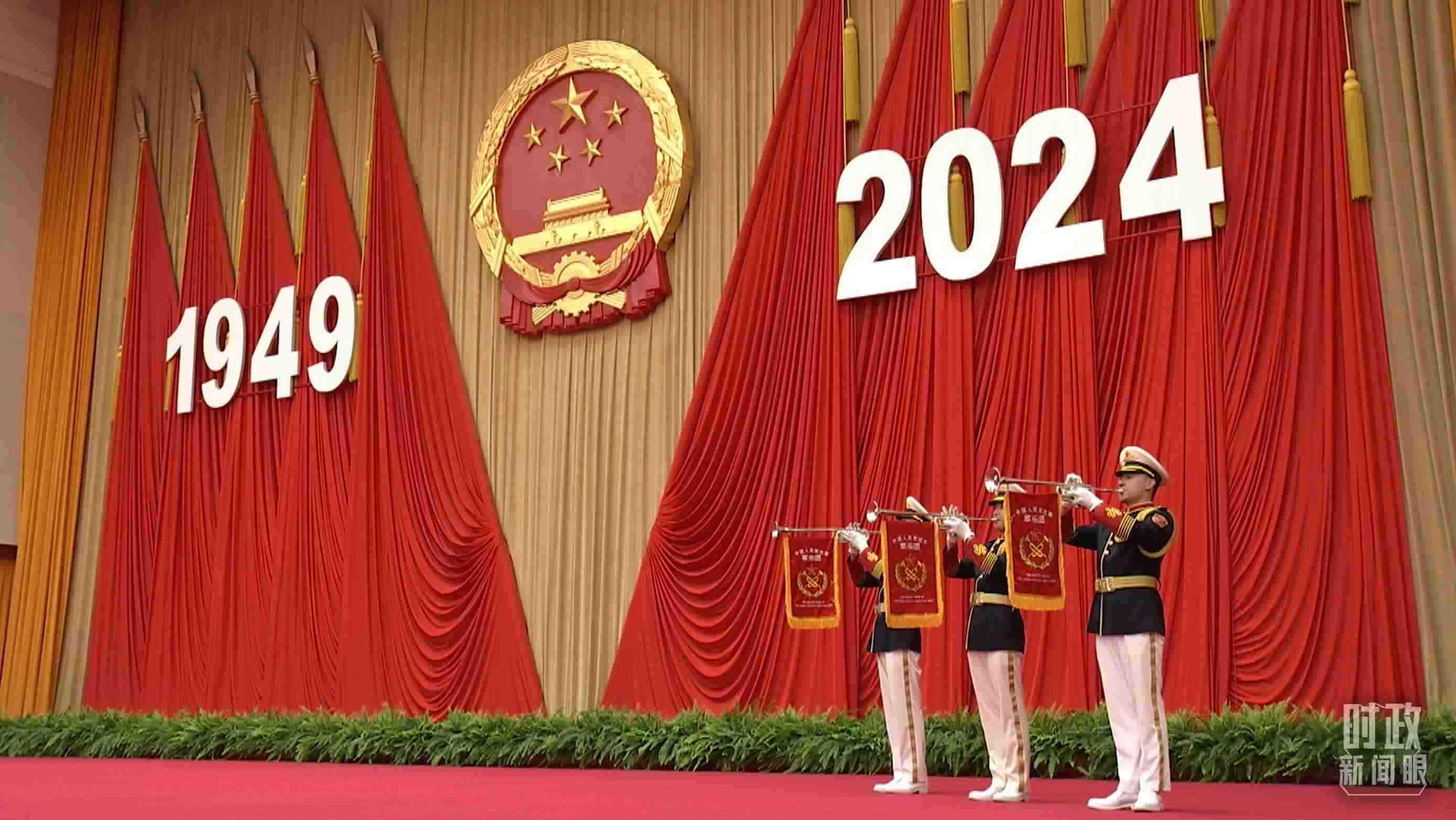 今年的國慶招待會上,在嘹亮的號角聲中,總書記走上主席臺,發(fā)表重要講話。