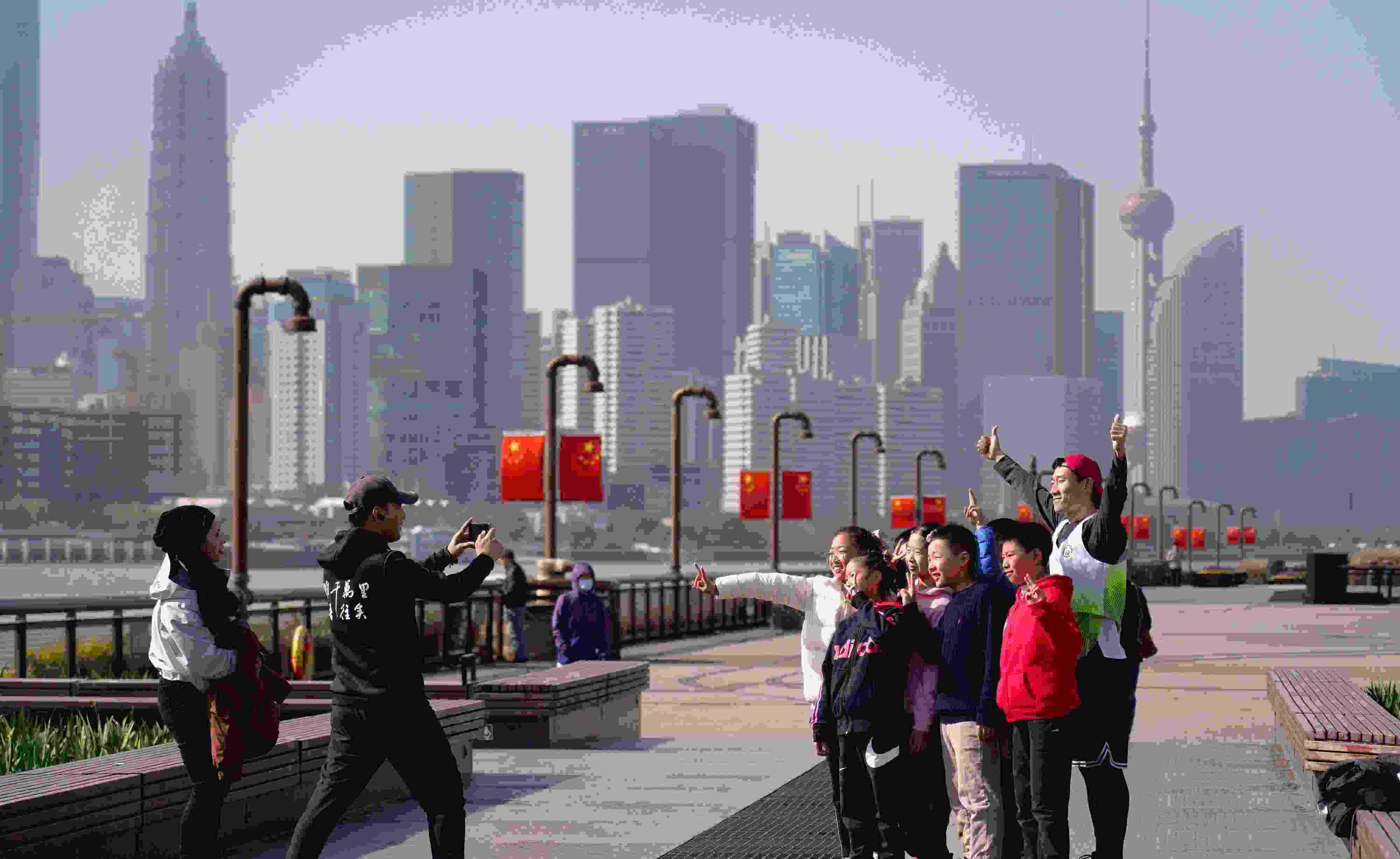 △ 2023年11月17日,市民游客在上海楊浦濱江岸線觀光拍照。