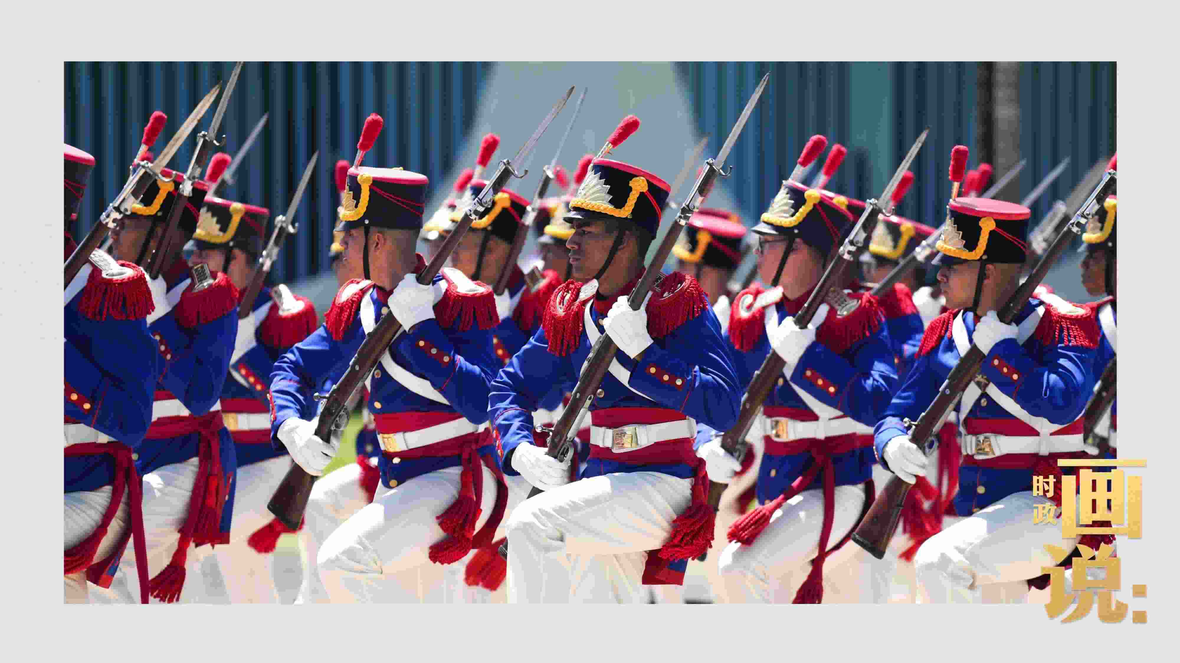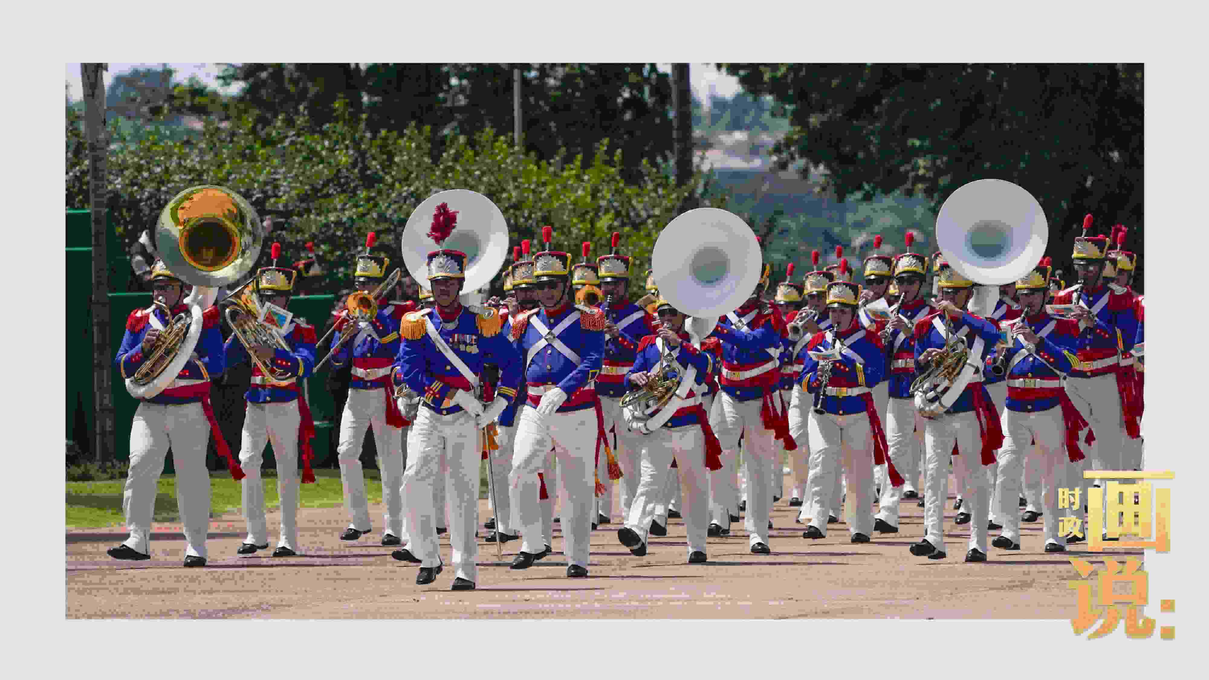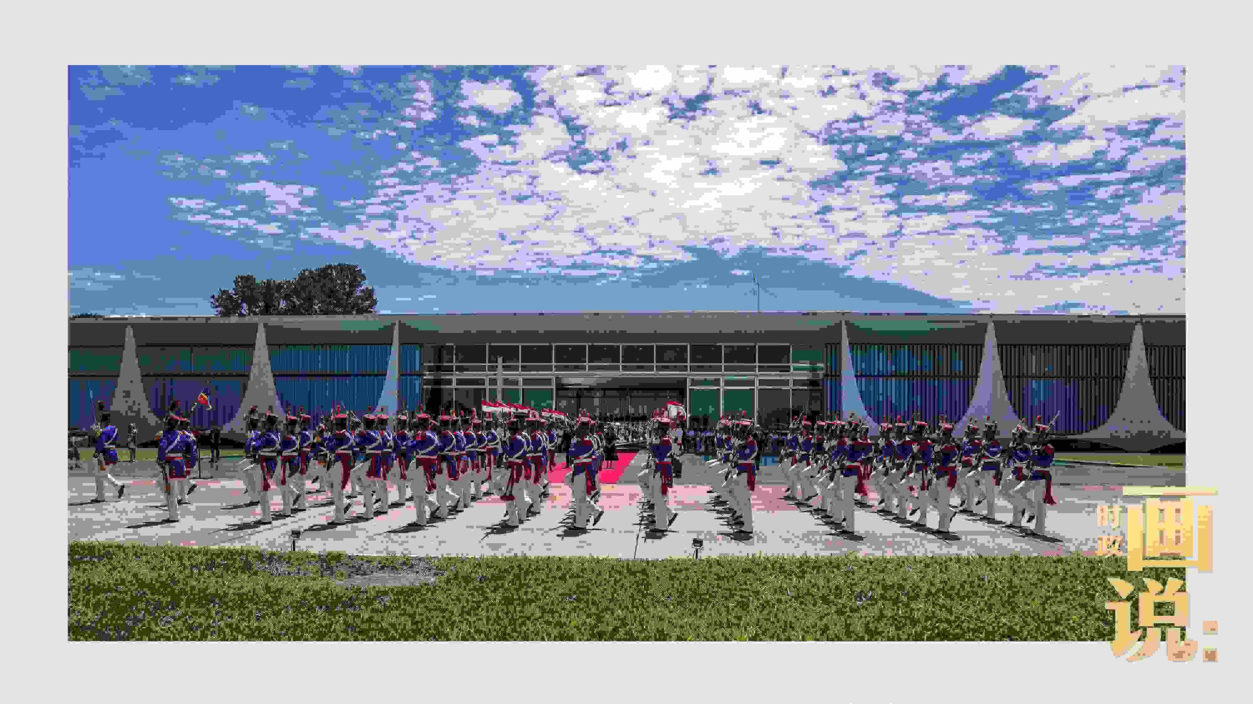 騎兵護(hù)衛(wèi)習(xí)近平主席專車抵達(dá)儀式現(xiàn)場(chǎng),巴西藝術(shù)家用中文深情唱響中國(guó)經(jīng)典民歌《我的祖國(guó)》,現(xiàn)場(chǎng)氣氛隆重?zé)崃摇?/p>