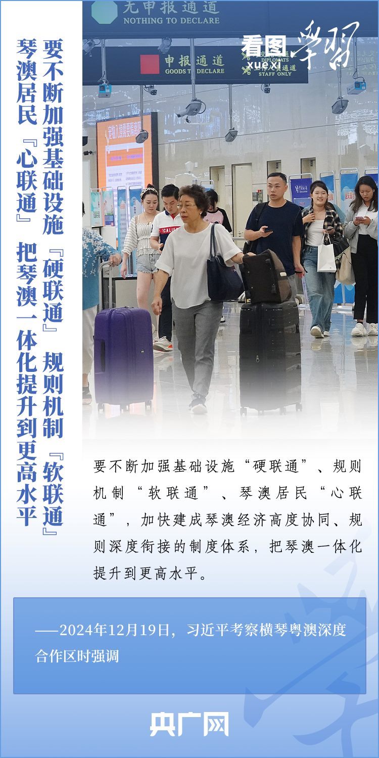 橫琴地處廣東珠海南端,與澳門一水之隔,是促進(jìn)澳門經(jīng)濟(jì)適度多元發(fā)展的重要平臺(tái)。12月19日,習(xí)近平總書(shū)記來(lái)到橫琴粵澳深度合作區(qū)考察,同居住在這里的市民代表、青年創(chuàng)業(yè)者代表以及參與合作區(qū)規(guī)劃、建設(shè)、管理、服務(wù)等各方面代表親切交流。總書(shū)記對(duì)合作區(qū)各項(xiàng)工作取得的進(jìn)展給予肯定,勉勵(lì)大家牢記開(kāi)發(fā)橫琴的初心,在新的起點(diǎn)上,銳意改革、聚力攻堅(jiān),攜手開(kāi)創(chuàng)合作區(qū)建設(shè)新局面。一起來(lái)學(xué)習(xí)!