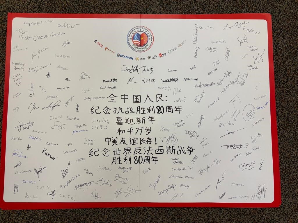2025年是中國人民抗日戰(zhàn)爭(zhēng)和世界反法西斯戰(zhàn)爭(zhēng)勝利80周年。美國華盛頓州中學(xué)師生代表在賀卡中致敬歷史:“紀(jì)念抗戰(zhàn)勝利80周年,紀(jì)念世界反法西斯戰(zhàn)爭(zhēng)勝利80周年?!绷?xí)近平主席夫婦在回贈(zèng)賀卡中說,第二次世界大戰(zhàn)期間,中美共同為和平和正義而戰(zhàn),兩國人民的友誼經(jīng)受了血與火的考驗(yàn),歷久彌新。