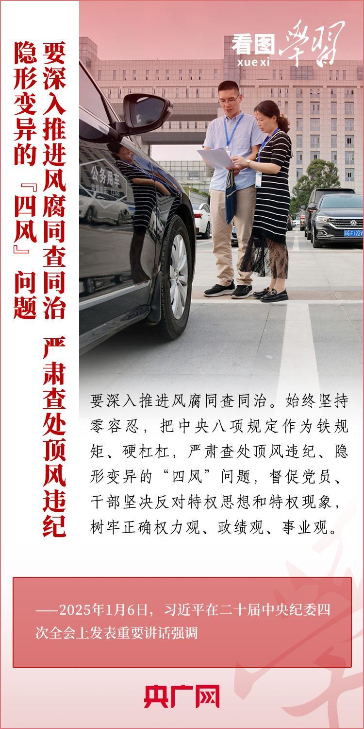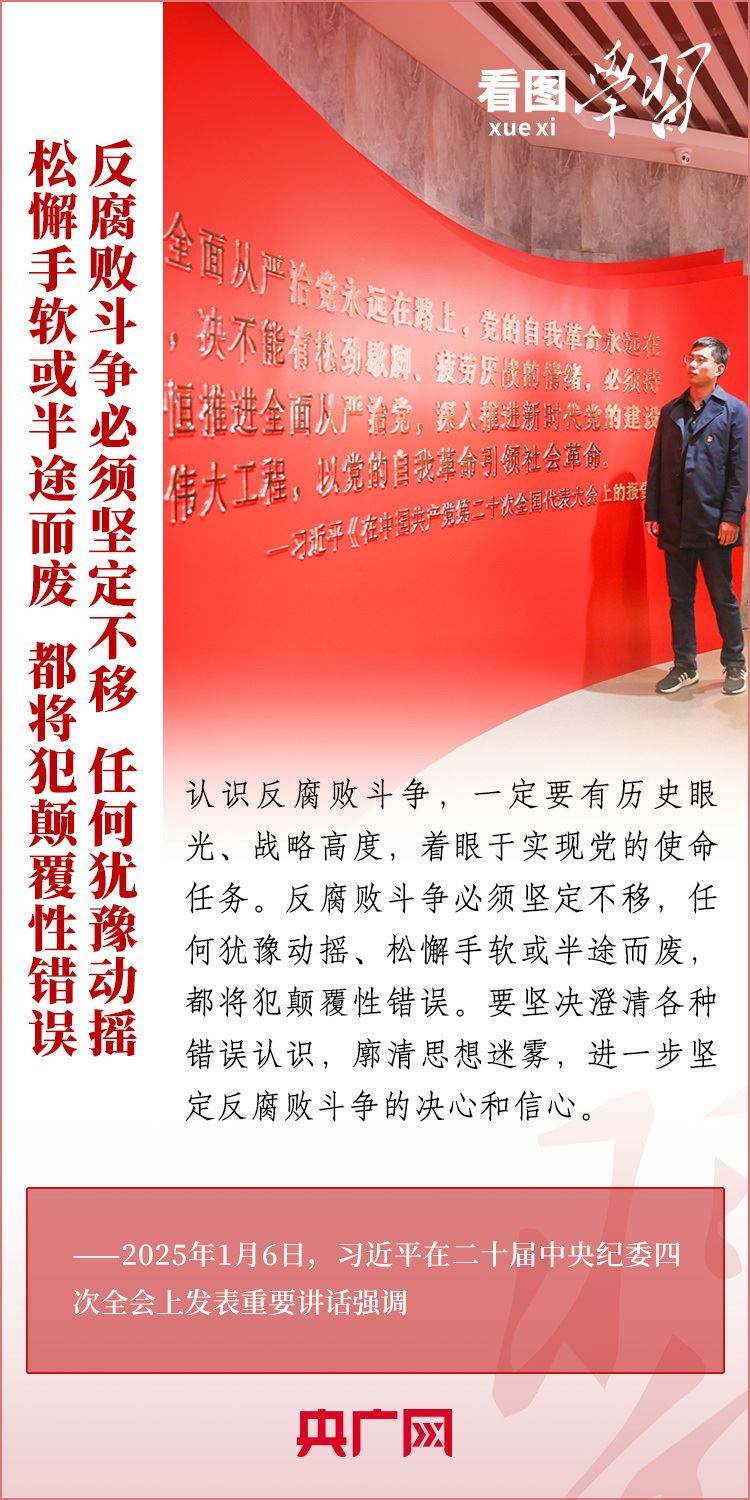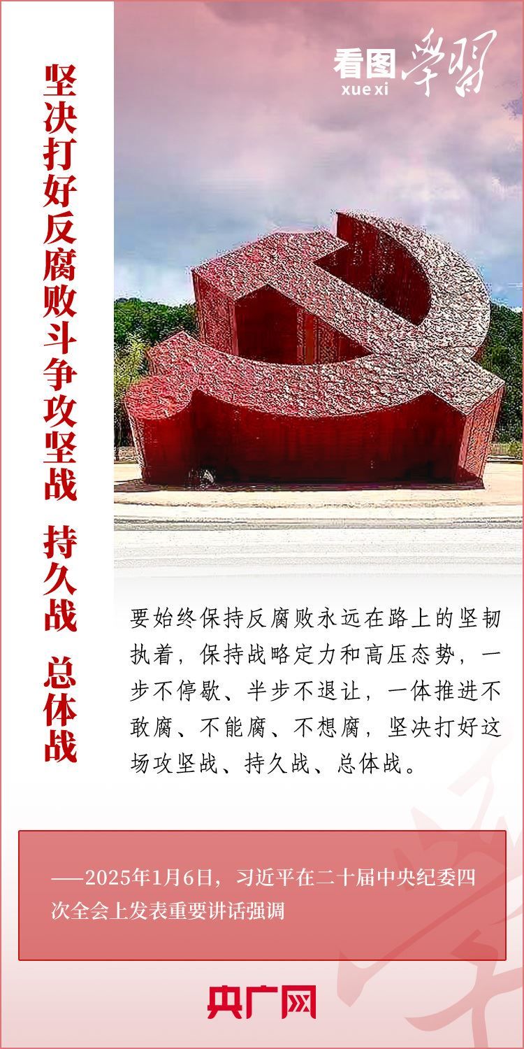 1月6日,習(xí)近平總書記在二十屆中央紀(jì)委四次全會上發(fā)表重要講話,充分肯定過去一年全面從嚴治黨取得的新進展、新成效,深刻分析當(dāng)前反腐敗斗爭形勢,對堅決打好反腐敗斗爭攻堅戰(zhàn)、持久戰(zhàn)、總體戰(zhàn)提出明確要求??倳洀娬{(diào),新時代新征程,必須堅持用改革精神和嚴的標(biāo)準(zhǔn)管黨治黨,努力取得更大成效,確保黨的二十大和二十屆三中全會部署落地落實,確保黨始終成為中國特色社會主義事業(yè)的堅強領(lǐng)導(dǎo)核心,推動中國式現(xiàn)代化行穩(wěn)致遠。一起來學(xué)習(xí)!