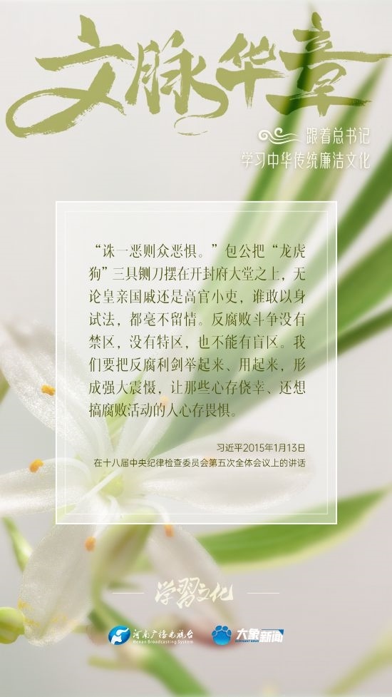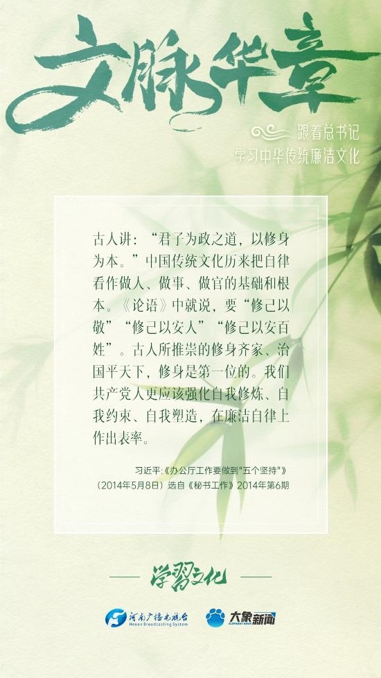 中華優(yōu)秀傳統(tǒng)文化蘊(yùn)含著豐富的廉潔文化,習(xí)近平總書記曾指出:沒有中華優(yōu)秀傳統(tǒng)文化、革命文化、社會(huì)主義先進(jìn)文化的底蘊(yùn)和滋養(yǎng),信仰信念就難以深沉而執(zhí)著??倳洺3R?jīng)據(jù)典,教育引導(dǎo)廣大黨員干部正心修身,涵養(yǎng)文化,守住為政之本。大象新聞分五期為您梳理,我們一起跟著總書記學(xué)習(xí)中華傳統(tǒng)廉潔文化。今天推出第五期。