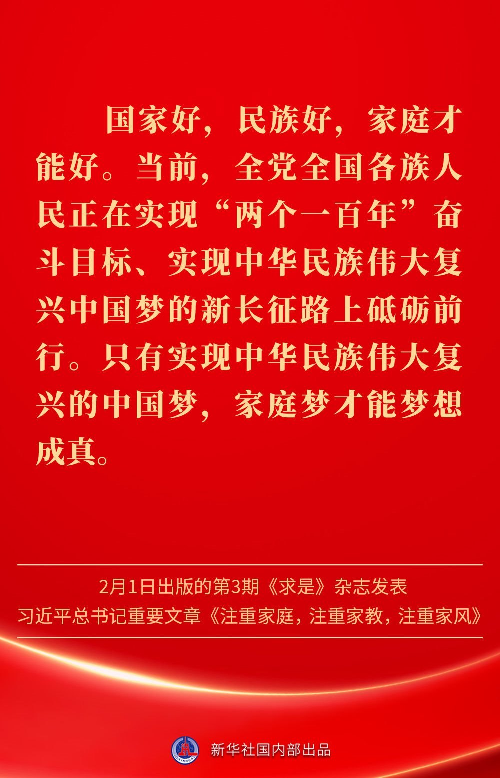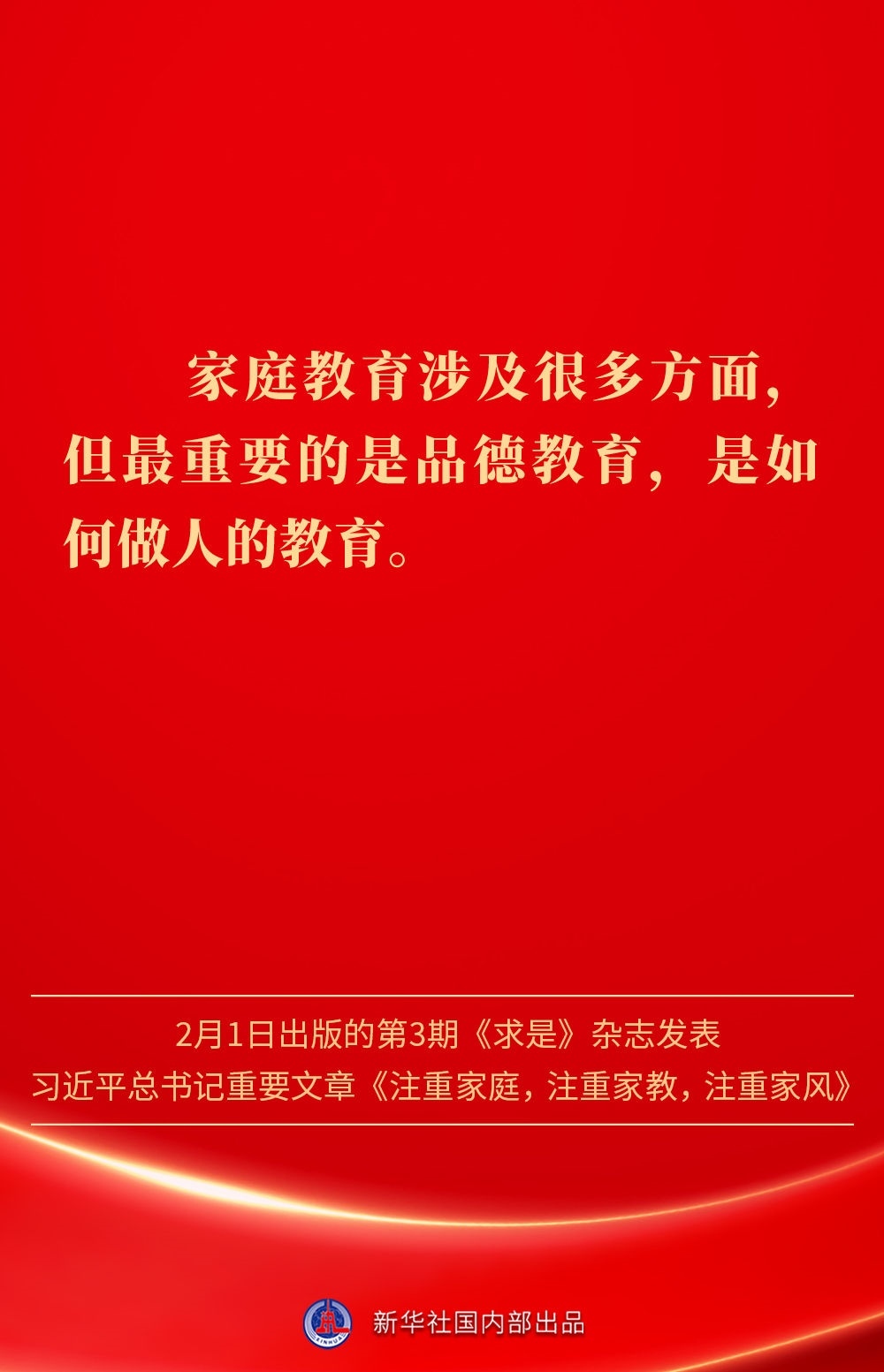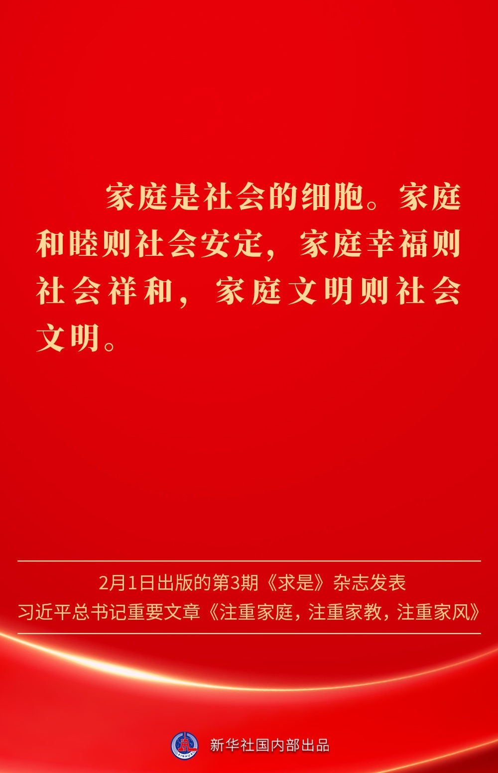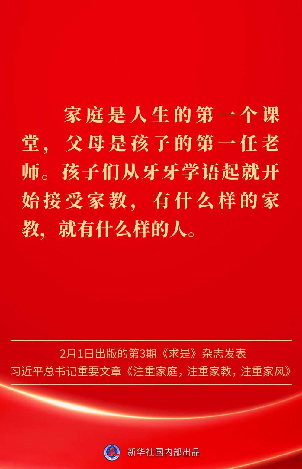 萬家團(tuán)圓共慶新春佳節(jié)之際,2月1日出版的第3期《求是》雜志發(fā)表習(xí)近平總書記重要文章《注重家庭,注重家教,注重家風(fēng)》。為什么要注重家庭、家教、家風(fēng)?如何做好家庭文明建設(shè)?習(xí)近平總書記這樣闡述——