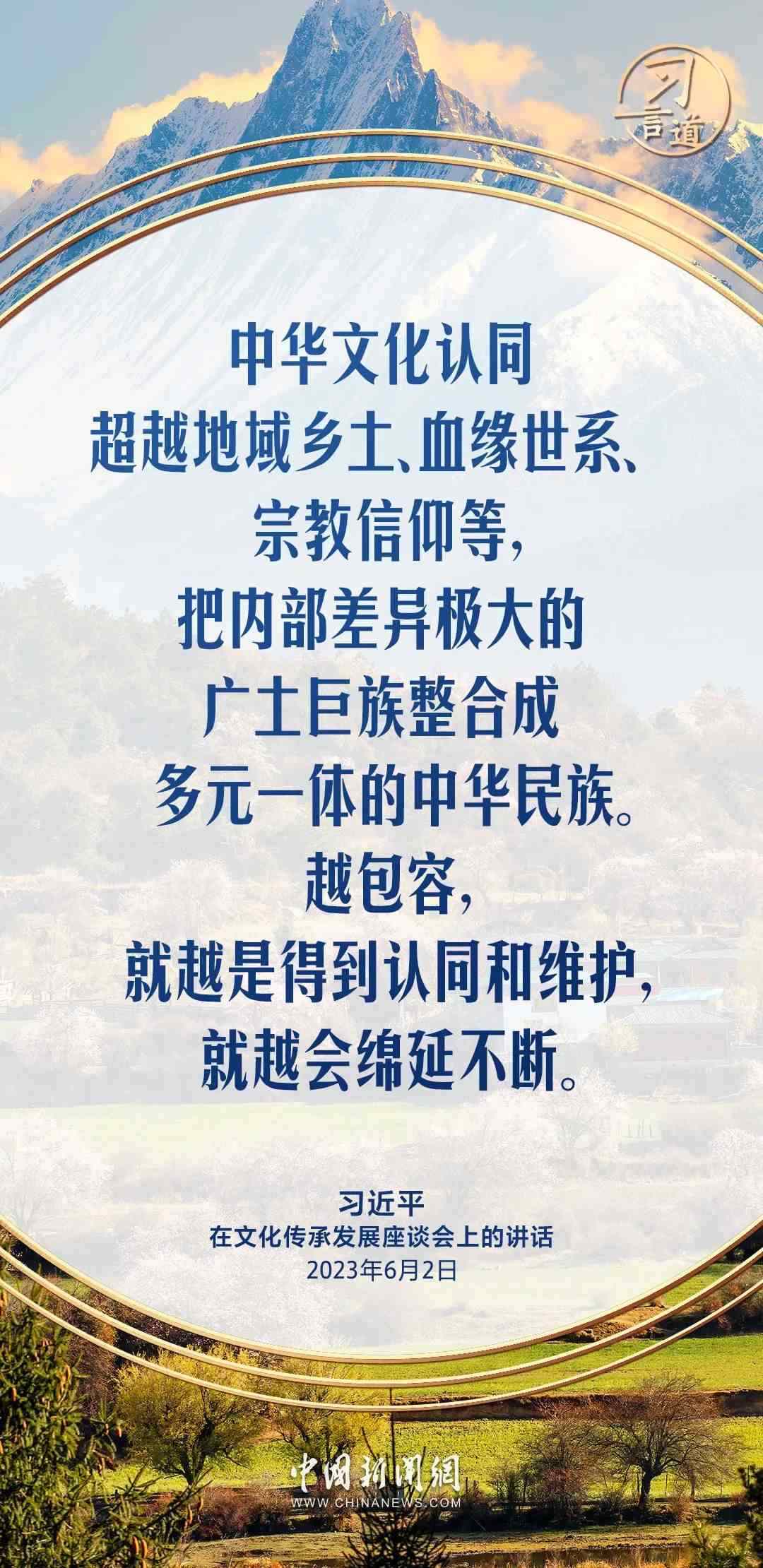 文化是一個民族的魂魄,文化認同是民族團結的根脈。習近平總書記始終重視民族文化保護和傳承,強調(diào)把各民族優(yōu)秀傳統(tǒng)文化發(fā)揚光大。