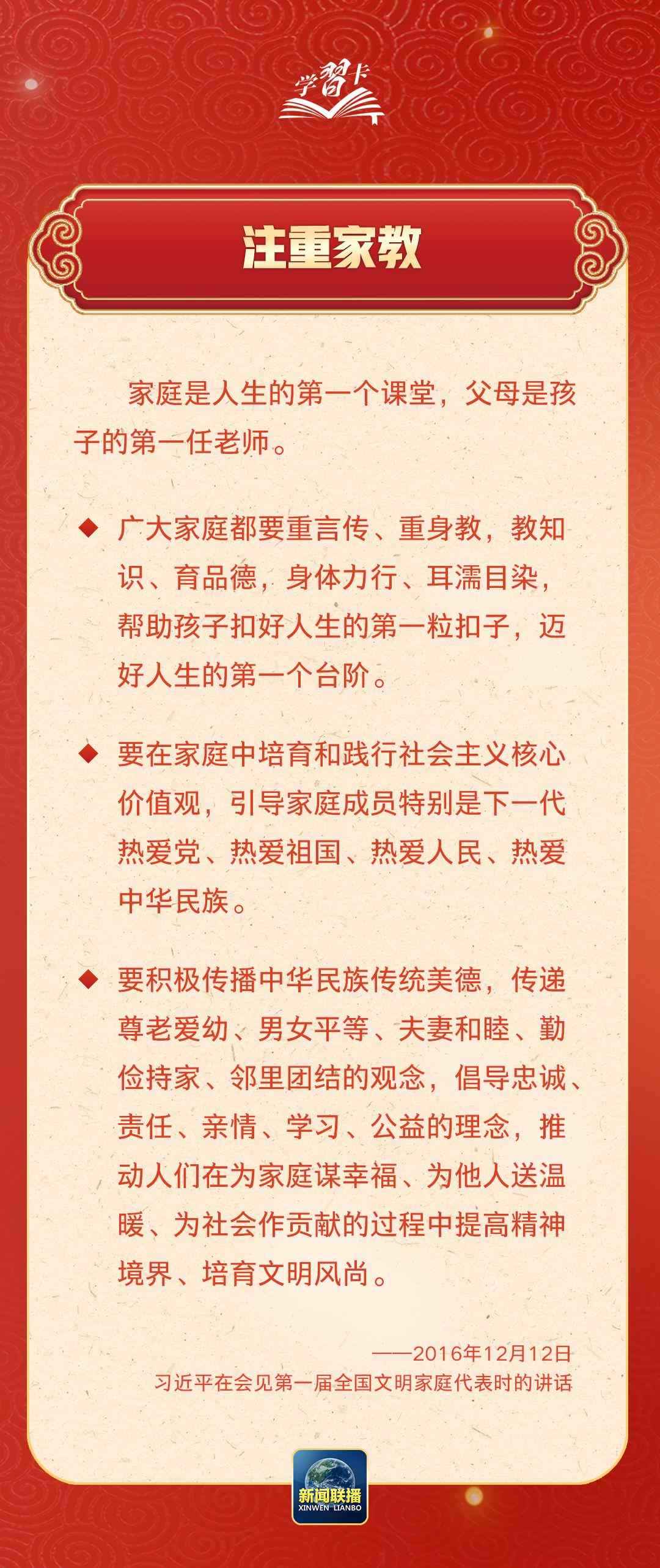 在習近平總書記心中,家國的分量很重。他多次強調(diào)要重視家庭建設,提倡愛家愛國相統(tǒng)一,指出廣大家庭都要弘揚優(yōu)良家風,以千千萬萬家庭的好家風支撐起全社會的好風氣。近日,《求是》雜志發(fā)表習近平總書記重要文章《注重家庭,注重家教,注重家風》,一起學習↓