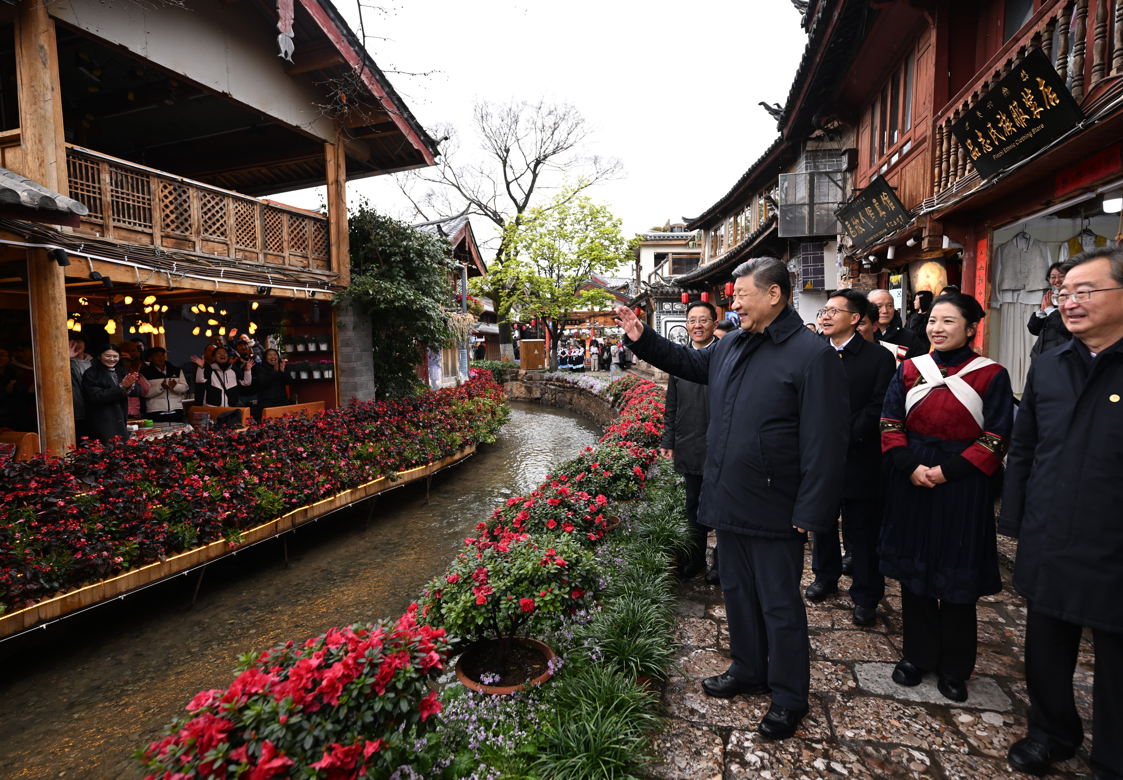 3月19日,習近平總書記考察麗江古城,詳細了解古城營建歷史、納西族民居特色和當?shù)匚幕z產(chǎn)保護利用、推動文旅融合發(fā)展等情況。