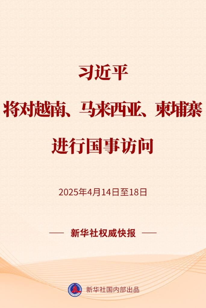 習(xí)近平將于4月14日至18日對(duì)越南、馬來西亞、柬埔寨進(jìn)行國(guó)事訪問。