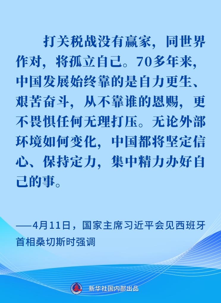 “打關稅戰(zhàn)沒有贏家,同世界作對,將孤立自己。70多年來,中國發(fā)展始終靠的是自力更生、艱苦奮斗,從不靠誰的恩賜,更不畏懼任何無理打壓。無論外部環(huán)境如何變化,中國都將堅定信心、保持定力,集中精力辦好自己的事。”