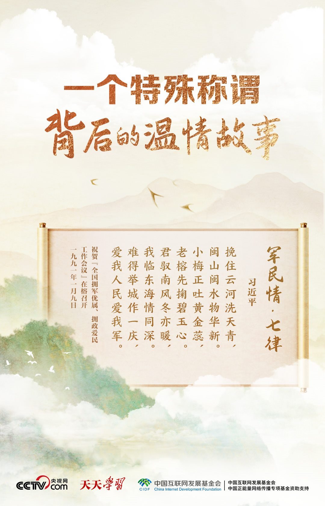 當(dāng)年在福州工作時,習(xí)近平曾賦詩《軍民情·七律》,表達(dá)了他對軍隊的深情:“君馭南風(fēng)冬亦暖,我臨東海情同深。難得舉城作一慶,愛我人民愛我軍?!?/p>