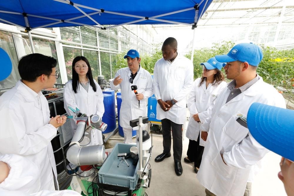 △2024年5月22日,“中國(guó)—聯(lián)合國(guó)糧農(nóng)組織南南合作拉丁美洲和加勒比地區(qū)農(nóng)村生計(jì)改善和糧食體系轉(zhuǎn)型能力建設(shè)活動(dòng)”學(xué)員赴江蘇省農(nóng)業(yè)科學(xué)院開(kāi)展交流。