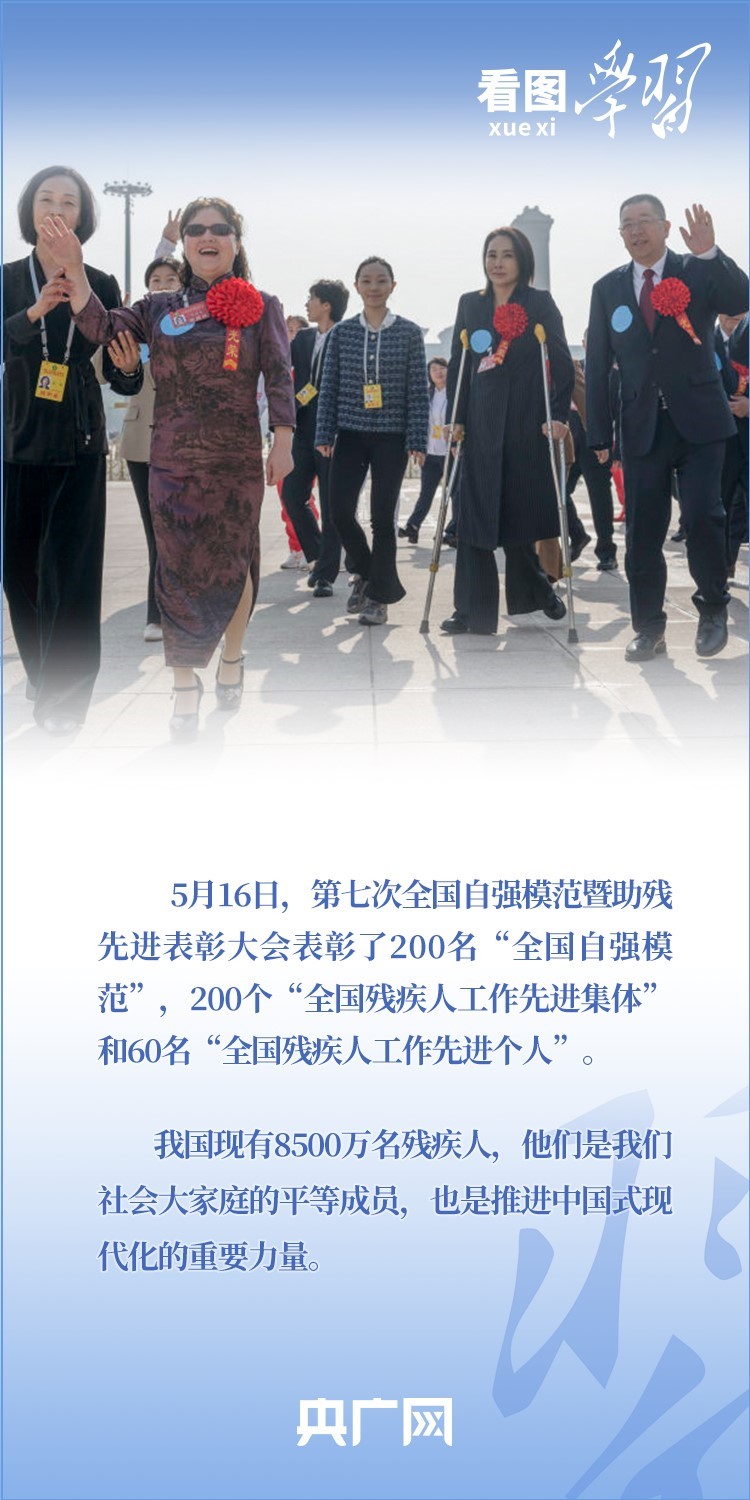 “殘疾人是推進中國式現代化的重要力量,也是需要格外關心、格外關注的特殊困難群體?!?月16日,第七次全國自強模范暨助殘先進表彰大會在京召開。習近平總書記作出重要指示,代表黨中央,向受表彰的全國自強模范和殘疾人工作先進集體、先進個人表示祝賀,向全國廣大殘疾人及其親屬、殘疾人工作者致以問候。