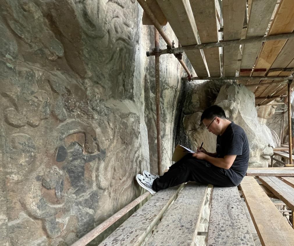 谷宏耀在龍門石窟進行考古調(diào)查。(受訪者供圖)