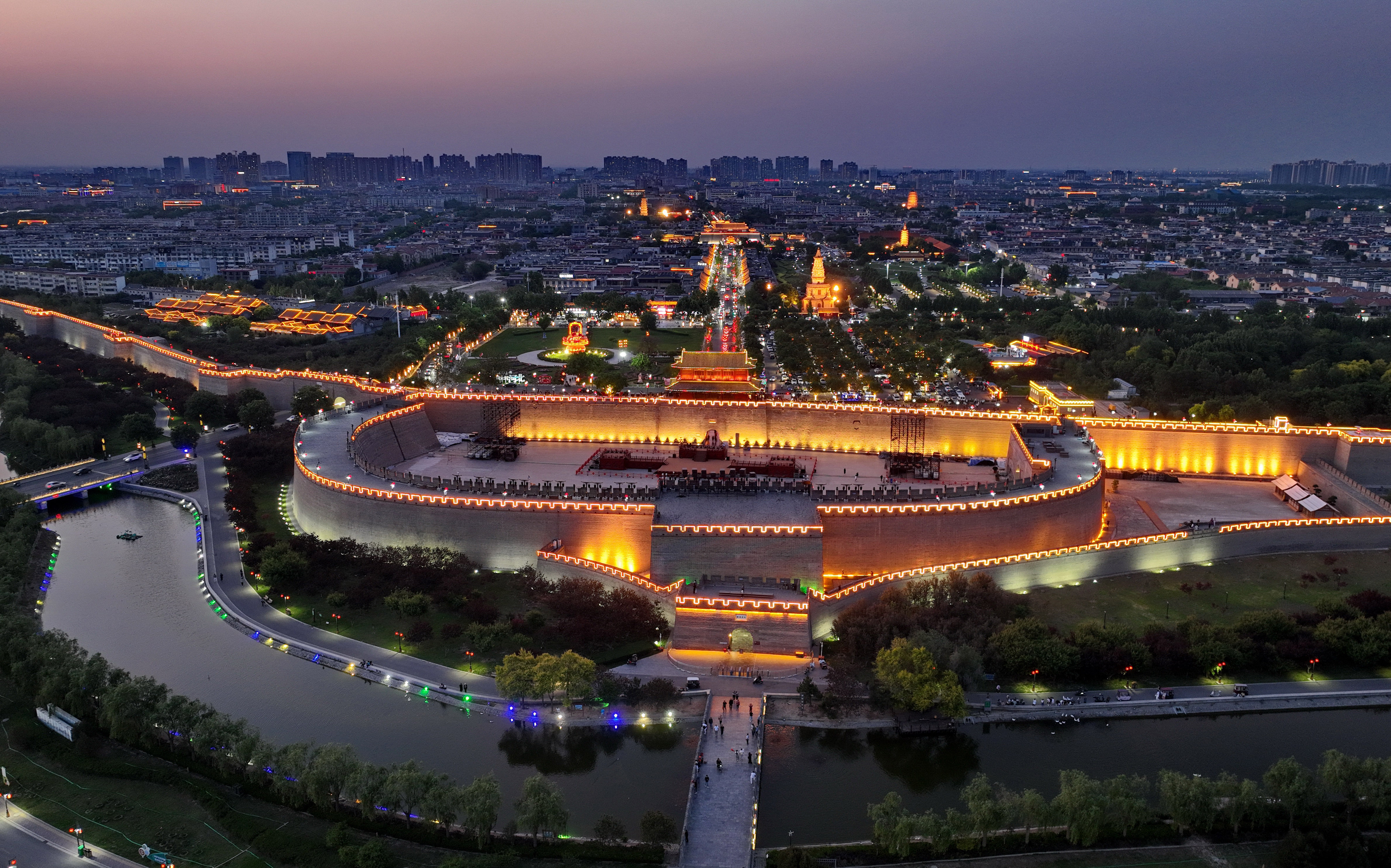 2025年5月15日,河北正定古城夜景(無人機(jī)照片)。 新華社記者 楊世堯攝
