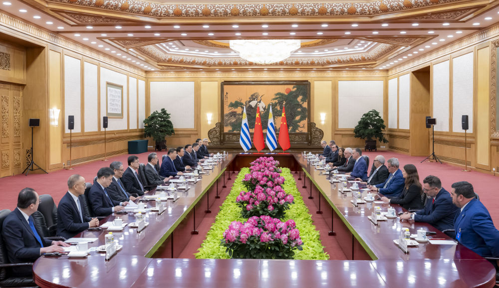 2月3日,國家主席習近平在北京同來華進行國事訪問的烏拉圭總統(tǒng)奧爾西舉行會談。