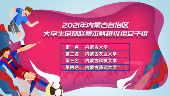 近年來,內蒙古校園足球蓬勃發(fā)展,多彩的校園足球賽事與活動呈現出不斷發(fā)展的生機與活力。作為全區(qū)舉辦規(guī)模最大、參賽人數最多、覆蓋面最廣、專為大學生量身打造的校園足球賽事,大學生足球聯賽成為我區(qū)各高校學子充分展示青春活力與頑強斗志的重要舞臺。2021年聯賽中,共設高職校園、高職超級、本科校園和本科超級組(男、女)共7個組別。錫林郭勒職業(yè)學院、包頭輕工職業(yè)技術學院、呼和浩特民族學院分別獲得高職校園男子組、女子組、超級男子組冠軍;內蒙古農業(yè)大學奪得本科校園男子、女子組冠軍;內蒙古科技大學、內蒙古大學分別奪得本科超級組男子、女子組冠軍。