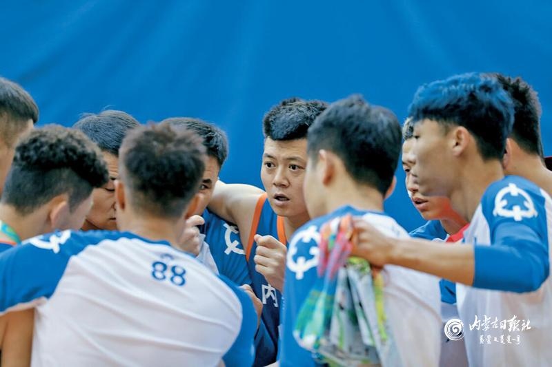 內(nèi)蒙古聾人籃球隊隊友們互相加油打氣。
