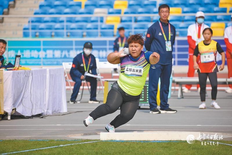 名將孟根吉米素在本屆賽事上斬獲女子f41 級鉛球和鐵餅兩枚金牌。